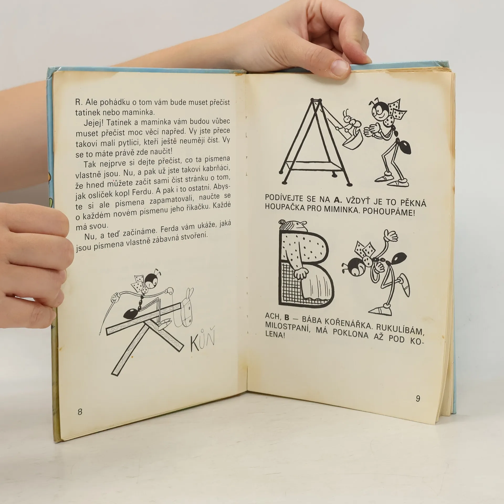 Průvodcem po slabikáři je postavička Ferdy Mravence, který představuje jednotlivá písmena říkankou a didaktickým vyprávěním ozřejmuje správné návyky při psaní. Velká písmena a množství ilustrací předurčují knížku k prvnímu čtení pro nejmenší.
