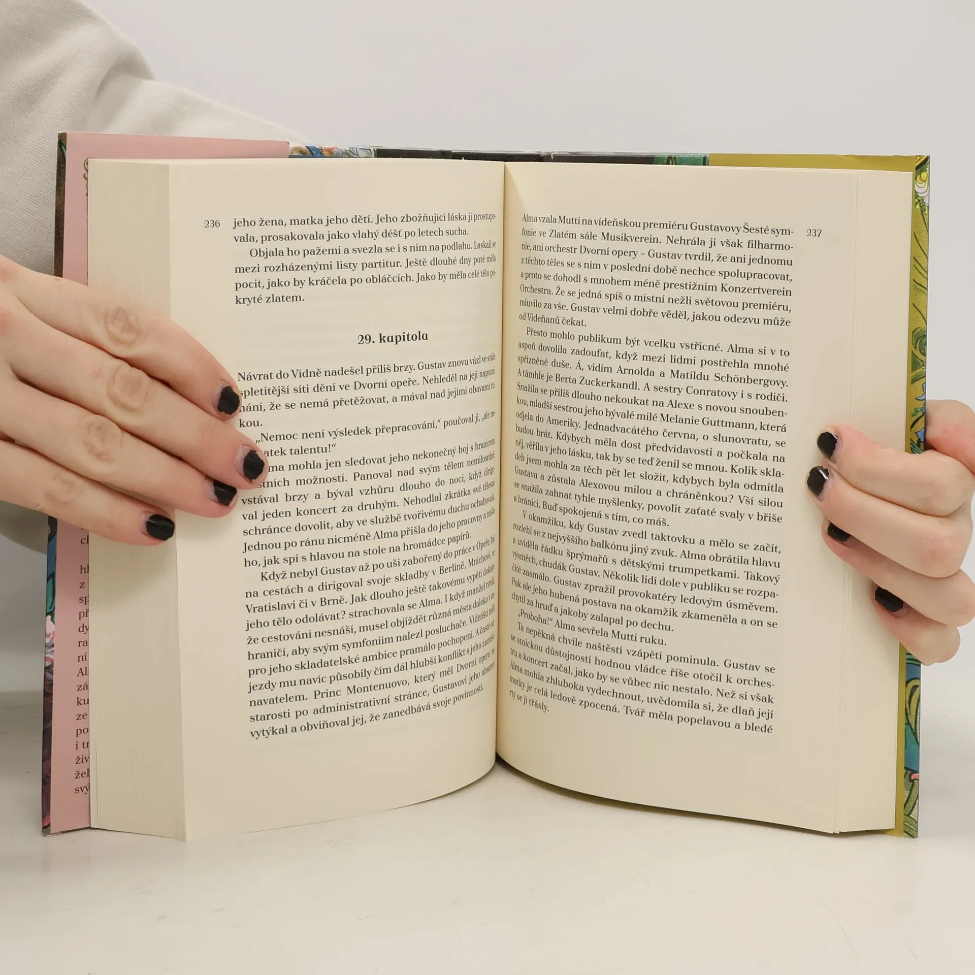 Alma Mahler-Schindlerová, kontroverzní postava přelomu 19. a 20. století, byla osudovou ženou, přítelkyní a milenkou mnoha secesních umělců, a manželkou velikánů jako Gustav Mahler. Román Mary Sharrattové se zaměřuje na období Alminy mladosti ve věku 19–31 let. Krásná a hudebně nadaná Alma vnímá nové příležitosti pro ženy, které se osvobozují od tradičních rolí. Její sen o studiu na prestižní konzervatoři zmaří rodiče, kteří ji chtějí zajistit vhodným sňatkem. Přesto má možnost soukromého studia hudby u Zemlinského, do nějž se zamiluje, ale rodiče vztah rozmluví kvůli jeho chudobě. Následně se setkává s Gustavem Mahlerem, téměř o 20 let starším skladatelem, a mezi nimi vzplane vášnivý vztah, který přináší jak extázi, tak hluboké pády. Žárlivý manžel brání Almě rozvíjet její talent. V kulisách secese a na pozadí Mahlerovy hudby sledujeme Almin přerod z mladé dívky na dospělou ženu, která se potýká s bolestmi, ztrátami a erotickými touhami. Alma se nevyhýbá ani bolestnému líčení porodů a zoufalství ze ztráty dětí. Její život je plný smutků, vášní a touhy po seberealizaci, kterou se snaží vyjádřit ve svých písních, navzdory manželovým zákazům.