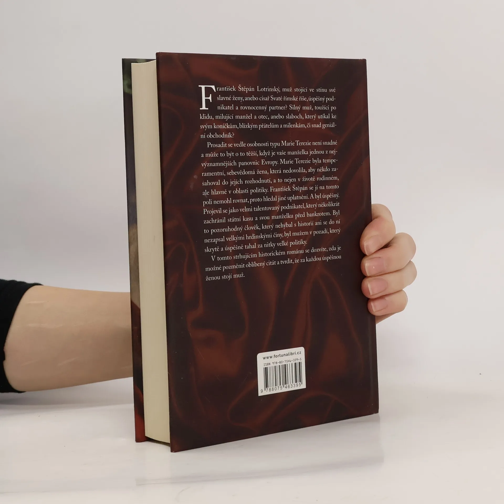 František Štěpán Lotrinský, muž stojící ve stínu své slavné ženy, anebo císař Svaté římské říše, úspěšný podnikatel a rovnocenný partner? Silný muž, toužící po klidu, milující manžel a otec, anebo slaboch, který utíkal ke svým koníčkům, blízkým přátelům a milenkám, či snad geniální obchodník? Prosadit se vedle osobnosti typu Marie Terezie není snadné a může to být o to těžší, když je vaše manželka jednou z nejvýznamnějších panovnic Evropy. Marie Terezie byla temperamentní, sebevědomá žena, která nedovolila, aby někdo zasahoval do jejích rozhodnutí, a to nejen v životě rodinném, ale hlavně v oblasti politiky. František Štěpán se jí na tomto poli nemohl rovnat, proto hledal jiné uplatnění. A byl úspěšný. Projevil se jako velmi talentovaný podnikatel, který několikrát zachránil státní kasu a svou manželku před bankrotem. Byl to pozoruhodný člověk, který nehýbal s historií ani se do ní nezapsal velkými hrdinskými činy, byl mužem v pozadí, který skrytě a úspěšně tahal za nitky velké politiky. V tomto strhujícím historickém románu se dozvíte, zda je možné pozměnit oblíbený citát a tvrdit, že za každou úspěšnou ženou stojí muž.