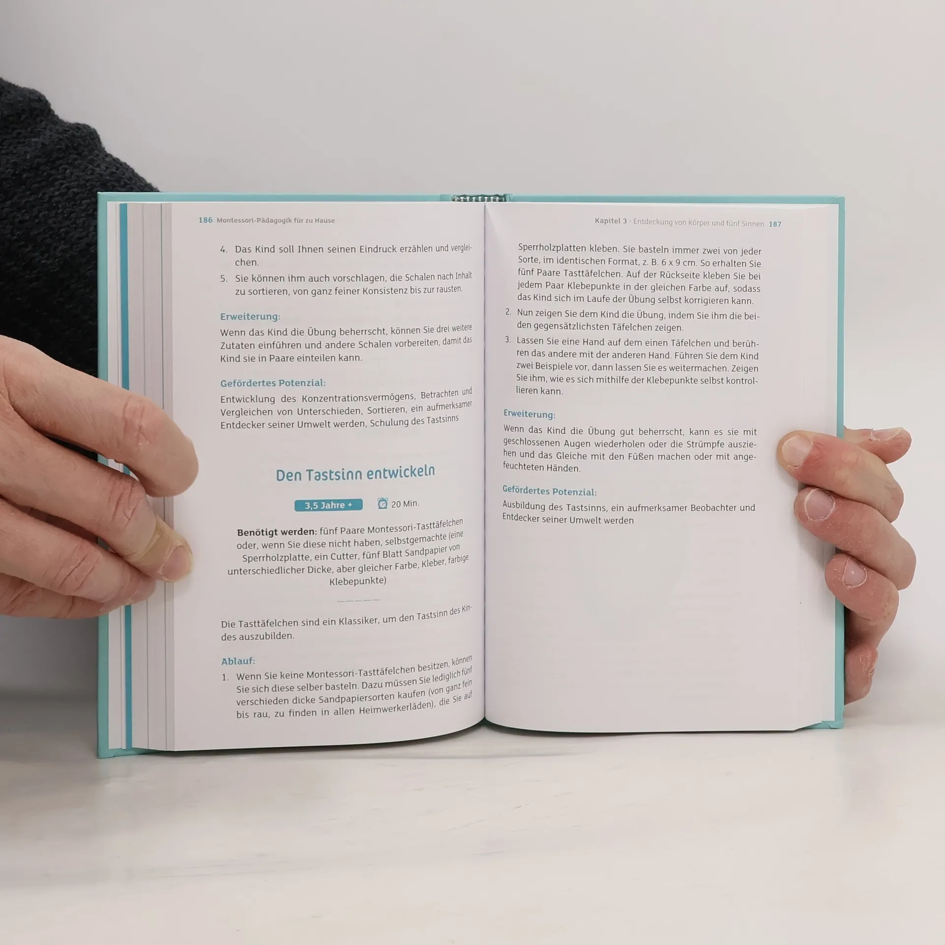 Selbstständigkeit, Selbstbewusstsein, Kreativität – in der Montessori- Pädagogik geschieht der Prozess des Lernens und der Erkenntnis im Kind selbst. Der Erwachsene begleitet den Lernprozess unterstützend, indem er die richtigen Mittel bereitstellt. Im Geist dieser Pädagogik präsentieren die Autorinnen 200 Aktivitäten für Kinder von 0–12 Jahren, mit denen sie Fähigkeiten in den Bereichen 'die Natur', 'die Kultur und die Welt', 'der Körper und die fünf Sinne' sowie 'das tägliche Leben' entwickeln. Eine wahre Goldgrube für Eltern, die diese Pädagogik unkompliziert im Alltag anwenden möchten.