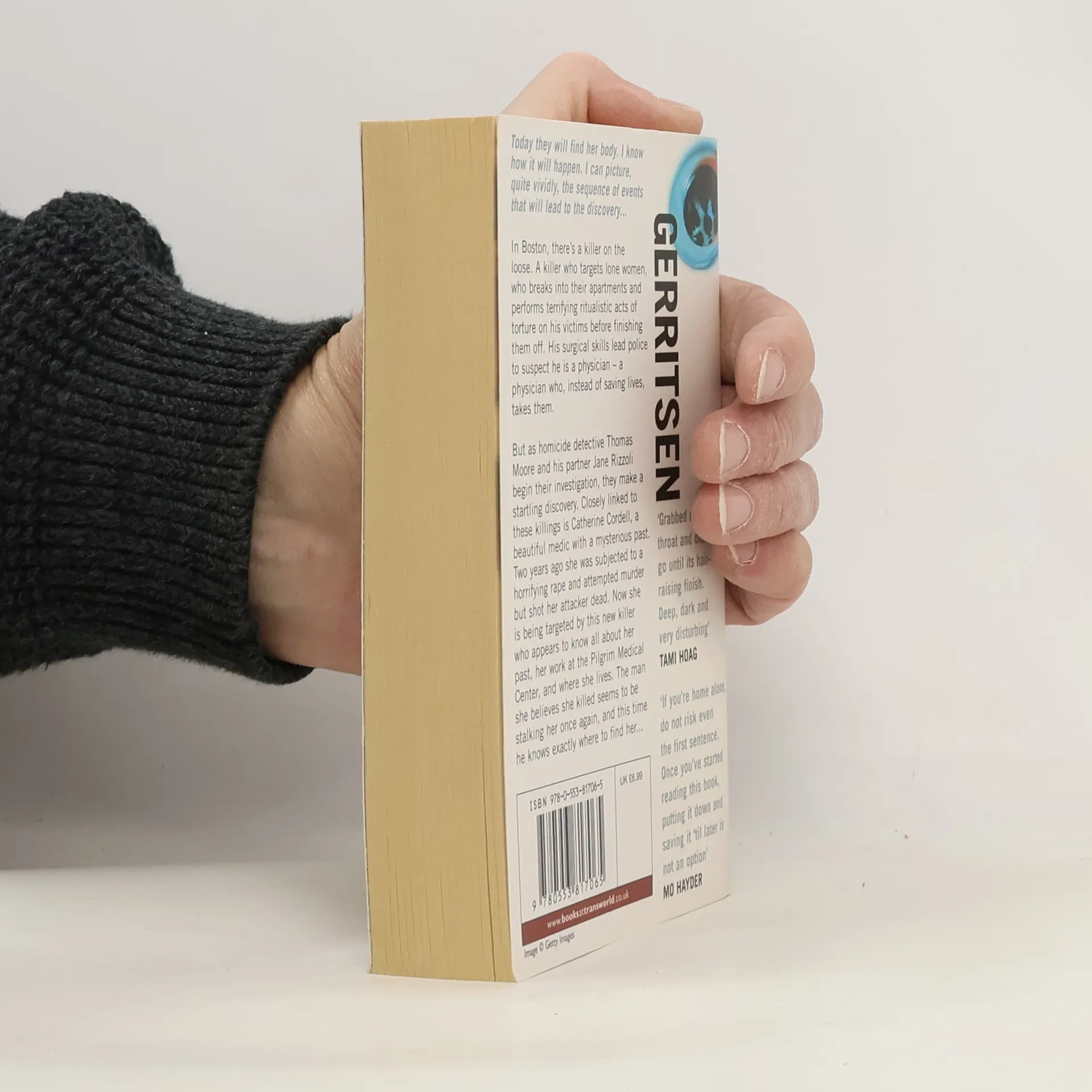 Today they will find her body. I know how it will happen. I can picture, quite vividly, the sequence of events that will lead to the discovery... In Boston, there's a killer on the loose. A killer who targets lone women, who breaks into their apartments and performs terrifying ritualistic acts of torture on his victims before finishing them off. His surgical skills lead police to suspect he is a physician - a physician who, instead of saving lives, takes them. But as homicide detective Thomas Moore and his partner Jane Rizzoli begin their investigation, they make a startling discovery. Closely linked to these killings is Catherine Cordell, a beautiful medic with a mysterious past. Two years ago she was subjected to a horrifying rape and attempted murder but shot her attacker dead. Now she is being targeted by this new killer who appears to know all about her past, her work at the Pilgrim Medical Center, and where she lives. The man she believes she killed seems to be stalking her once again, and this time he knows exactly where to find her...