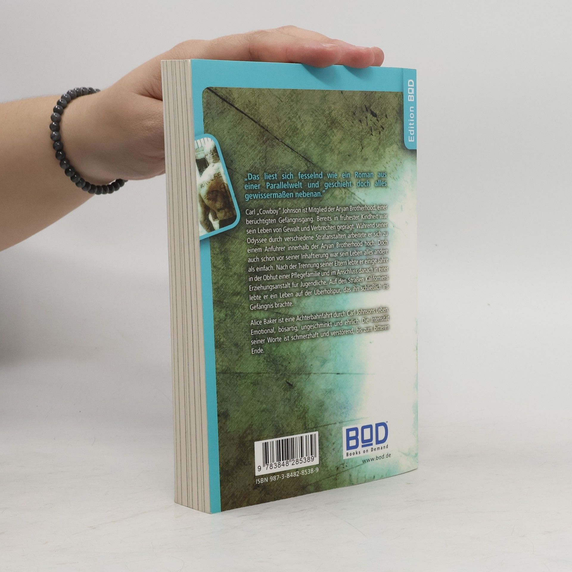 „Das liest sich fesselnd wie ein Roman aus einer Parallelwelt und geschieht doch alles gewissermaßen nebenan.“Carl „Cowboy“ Johnson ist Mitglied der Aryan Brotherhood, einer berüchtigten Gefängnisgang. Bereits in frühester Kindheit war sein Leben von Gewalt und Verbrechen geprägt. Während seiner Odyssee durch verschiedene Strafanstalten arbeitete er sich zu einem Anführer innerhalb der Aryan Brotherhood hoch. Dochauch schon vor seiner Inhaftierung war sein Leben alles andere als einfach. Nach der Trennung seiner Eltern lebte er einige Jahre in der Obhut einer Pflegefamilie und im Anschluss danach in einer Erziehungsanstalt für Jugendliche. Auf den Straßen Kaliforniens lebte er ein Leben auf der Überholspur, das ihn schließlich insGefängnis brachte.Alice Baker ist eine Achterbahnfahrt durch Carl Johnsons Leben. Emotional, bösartig, ungeschminkt und ehrlich. Die Intensität seiner Worte ist schmerzhaft und verstörend, bis zum bitteren Ende.