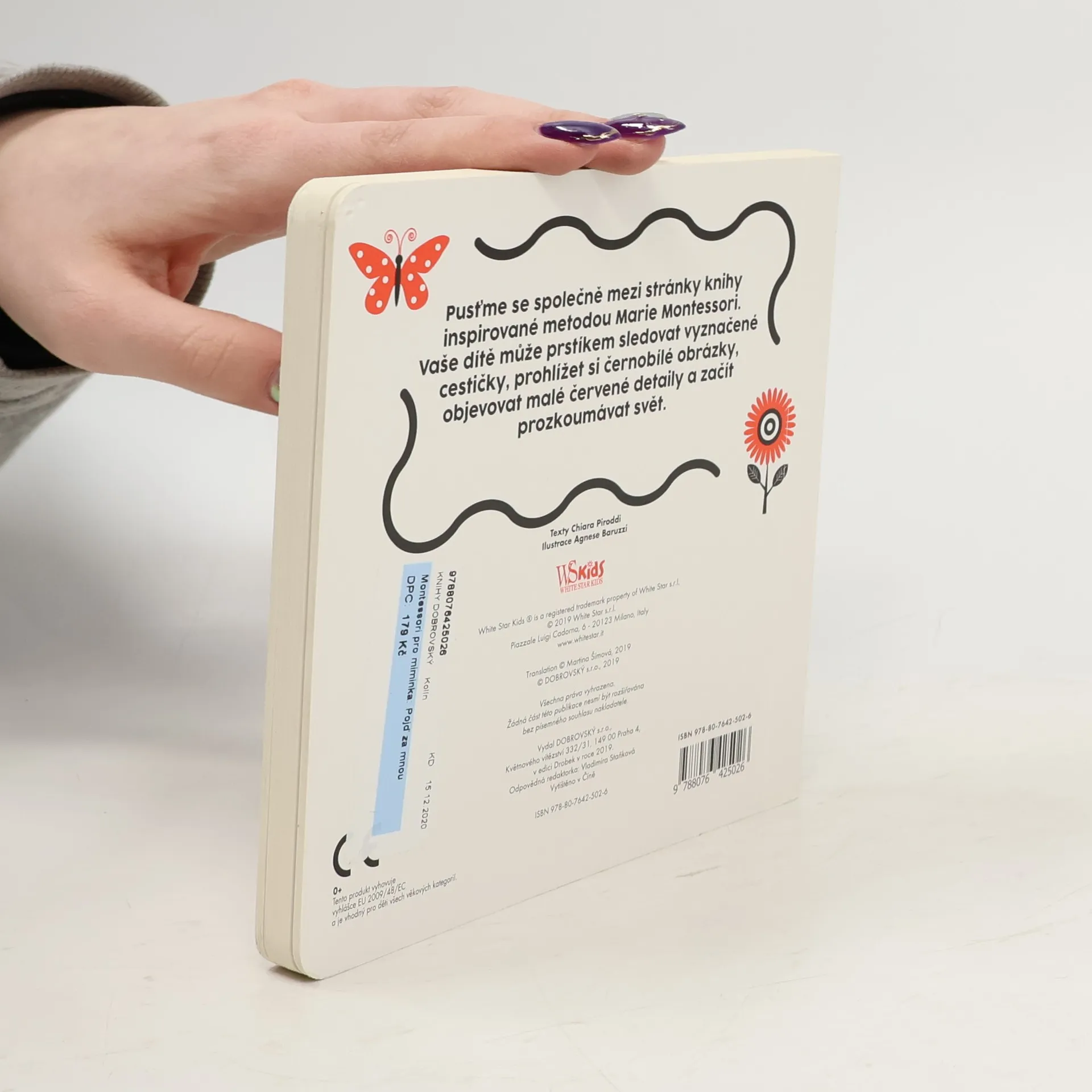 Pusťme se společně mezi stránky knihy inspirované metodou Marie Montessori. Vaše dítě může prstíkem sledovat vyznačené cestičky, prohlížet si černobílé obrázky, objevovat malé červené detaily a začít prozkoumávat svět. Vhodné pro děti ve věku 0 až 12 měsíců.