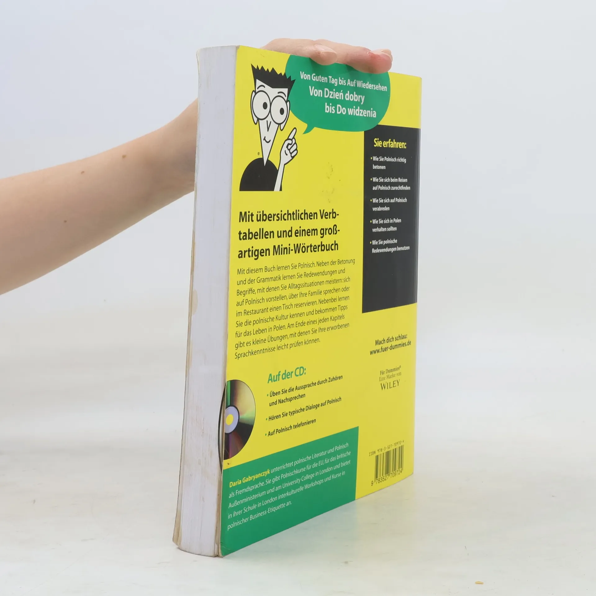 Mit diesem Buch lernen Sie Polnisch. Neben der Betonung und der Grammatik lernen Sie Redewendungen und Begriffe, mit denen Sie Alltagssituationen meistern: sich auf Polnisch vorstellen, über Ihre Hobbys sprechen oder einen Tisch in einem Restaurant reservieren. Nebenbei lernen Sie die polnische Kultur kennen und bekommen Tipps für das Leben in Polen. Am Ende eines jeden Kapitels gibt es kleine Übungen, mit denen Sie Ihre erworbenen Sprachfähigkeiten leicht prüfen können. Dem Buch liegt eine CD mit Übungen zum Hören und Nachsprechen bei
