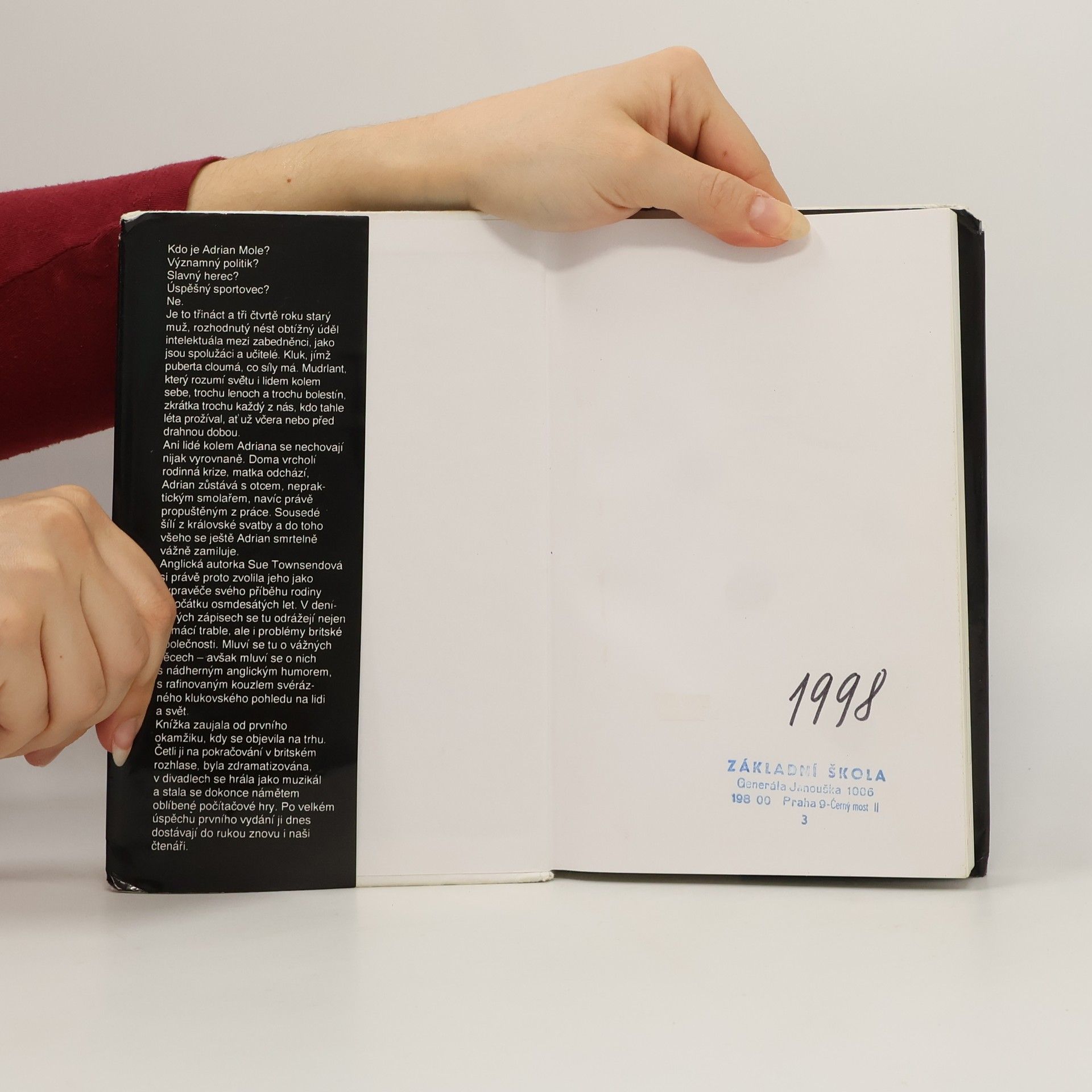 První z oblíbené série deníků Adriana Molea zastihuje hlavního hrdinu ve věku třinácti a půl roku. Je to pro něj nelehká doba, puberta s ním cloumá, svět je plný hlupáků a zabedněnců, kteří pro jeho umělecké vzlety nemají špetku pochopení. On je však pevně rozhodnutý statečně nést těžký úděl intelektuála. Uprostřed osobních trablů a zmatků však hrdina dokáže svérázným klukovským pohledem sledovat a s neodolatelným anglickým humorem komentovat vážné i nevážné problémy, které hýbou britskou společností. Druhé vydání.