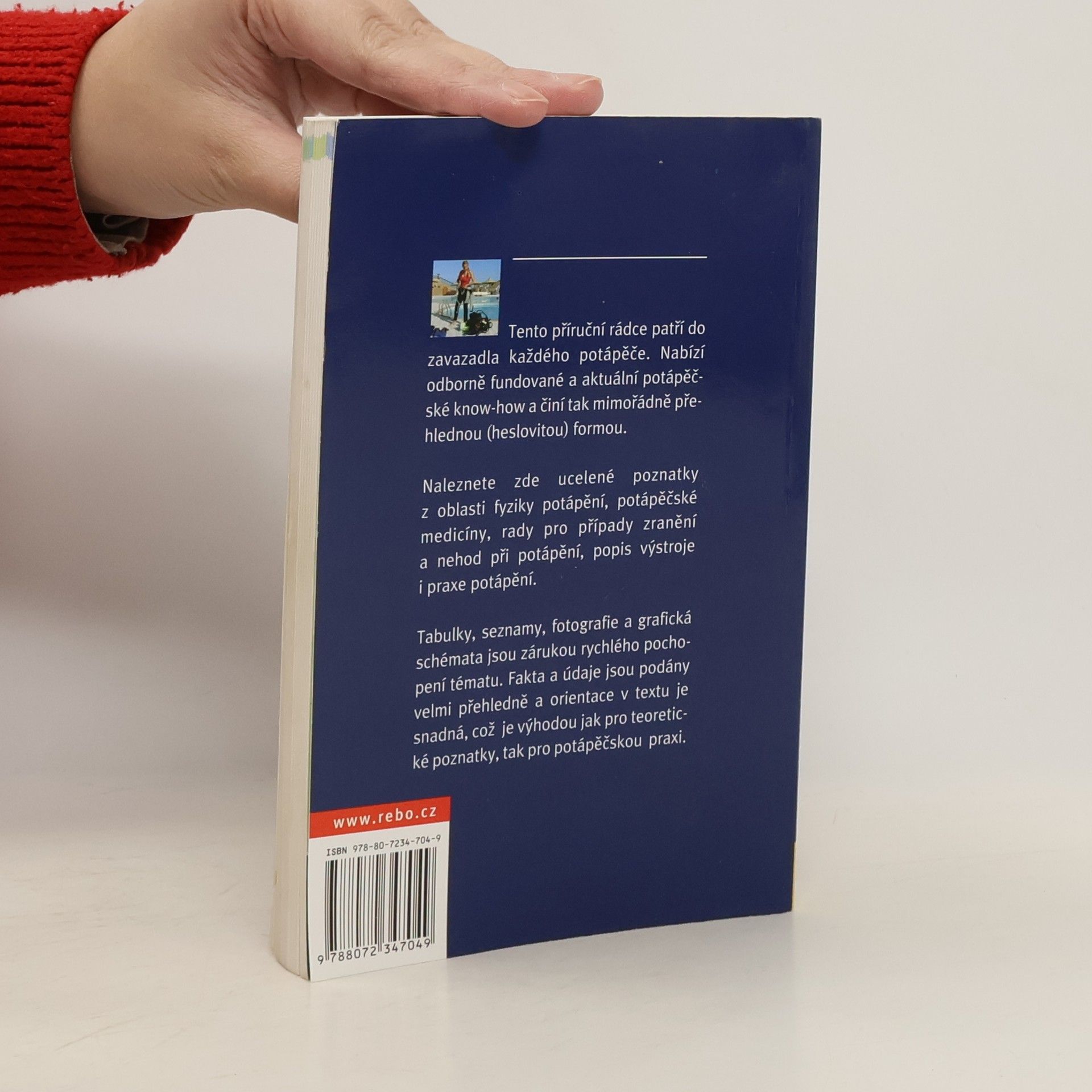 Tento příruční rádce patří do zavazadla každého potápěče. Nabízí odborně fundované a aktuální potápěčské know-how a činí tak mimořádně přehlednou (heslovitou) formou. Naleznete zde ucelené poznatky z oblasti fyziky potápění, potápěčské medicíny, rady pro případy zranění a nehod při potápění, popis výstroje i praxe potápění. Tabulky, seznamy, fotografie a grafická schémata jsou zárukou rychlého pochopení tématu. Fakta a údaje jsou podány velmi přehledně a orientace v textu je snadná, což je výhodou jak pro teoretické poznatky, tak pro potápěčskou praxi.