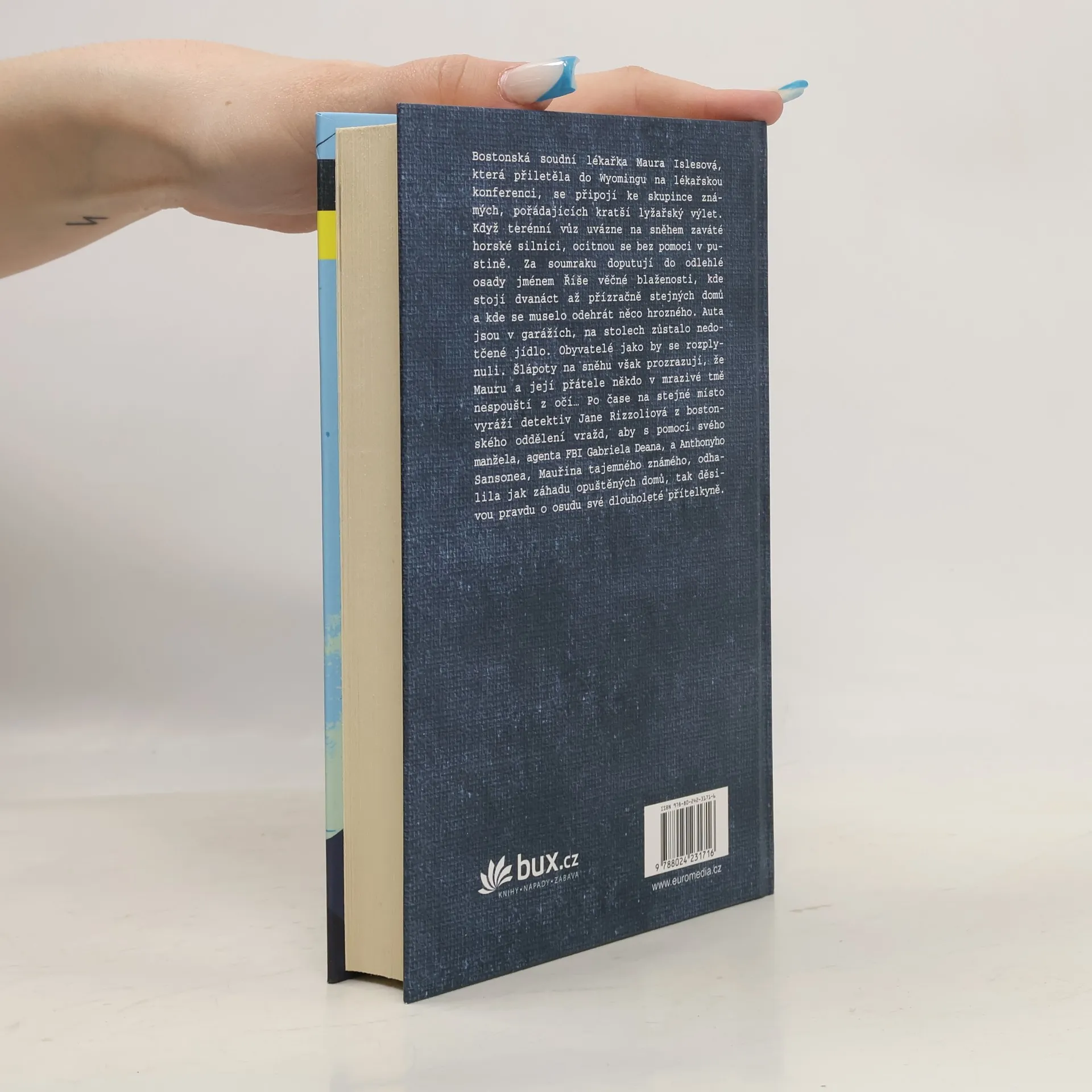 Bostonská soudní lékařka Maura Islesová, která přiletěla do Wyomingu na konferenci, se zúčastní lyžařského výletu. Když terénní vůz uvázne na zaváté horské silnici, ocitne se skupina bez pomoci v pustině. Za soumraku doputují do odlehlé osady jménem Říše věčné blaženosti, kde stojí dvanáct až přízračně stejných domů a kde se muselo odehrát něco hrozného. Auta jsou v garážích, na stolech zůstalo nedotčené jídlo. Obyvatelé jako by se rozplynuli. Šlápoty na sněhu však prozrazují, že Mauru a její přátele někdo v mrazivé tmě nespouští z očí… Po čase na stejné místo vyráží detektiv Jane Rizzoliová z bostonského oddělení vražd, aby vypátrala jak záhadu opuštěných domů, tak děsivou pravdu o osudu své dlouholeté přítelkyně.