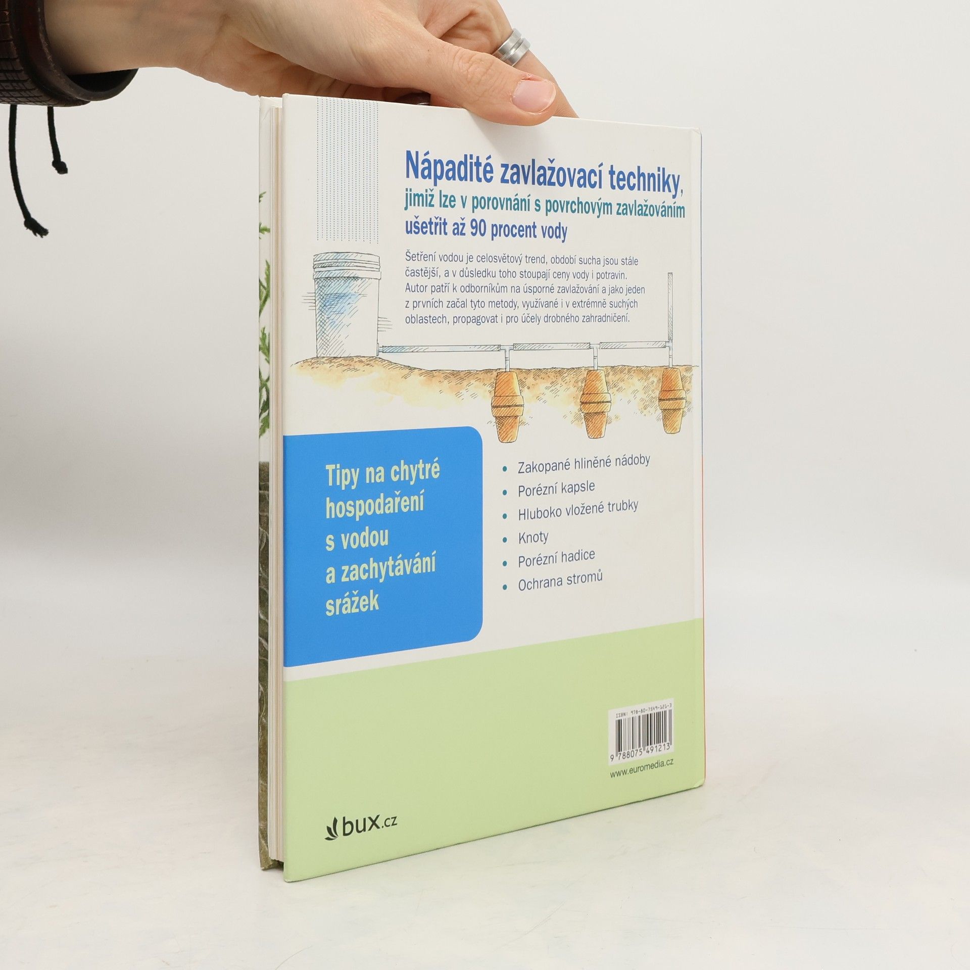 Příručka je zaměřená na alternativní techniky zavlažování rostlin. Na základě zkušeností z celého světa popisuje jednoduché zavlažovací systémy, s nimiž lze ušetřit značné množství vody. Patří sem například keramické květináče zanořené do půdy, využití knotů, jednoduché potrubní systémy, které lze použít i ve svahu, kapkové závlahy ad. Jde o moderní trend.
