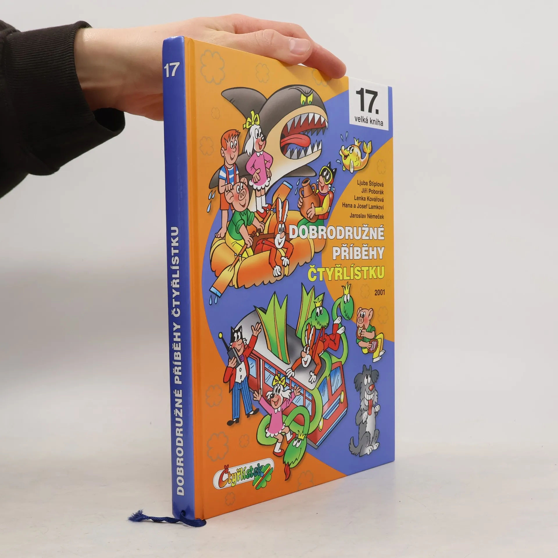 Již sedmnáctá velká kniha této oblíbené edice obsahuje příběhy z čísel 310 až 326 z roku 2001. V prvním příběhu Drak metrák prožije Čtyřlístek napínavou jízdu s drakem, který se promění ve vlak. Trochu popletené pohádky zase napraví v Pohádkové zimě a Brýle mámení odhalí dávno zapomenutou bitvu o Třeskoprsky. Jednoho malého šachového mistra naši čtyři kamarádi naučí, že i sportování má něco do sebe, a spoustu legrace zažijí se zvířátky v příběhu Máme rádi zvířata. Pinďovo neuvážené malování zase přivede na svět samotného čerta. Ve Skoku do neznáma unesou Čtyřlístek mimozemšťané a obr Barnabáš si velice oblíbí Fifinčiny buchty. Dozvíte se také, jak to dopadne, když ježibaba promění Bobíka v kocoura, i jak rozchodit sochy na Velikonočním ostrově. Naši kamarádi budou společně cestovat v čase s dvojčaty z budoucnosti nebo si zatančí na diskotéce s jeskyňkami. A nakonec zachrání Santu Klause v příběhu Vánoce nebudou. Jak je vidět, celá tato kniha je plná těch pravých čtyřlístkových dobrodružství, která můžete prožít společně s naší veselou čtyřkou přátel.