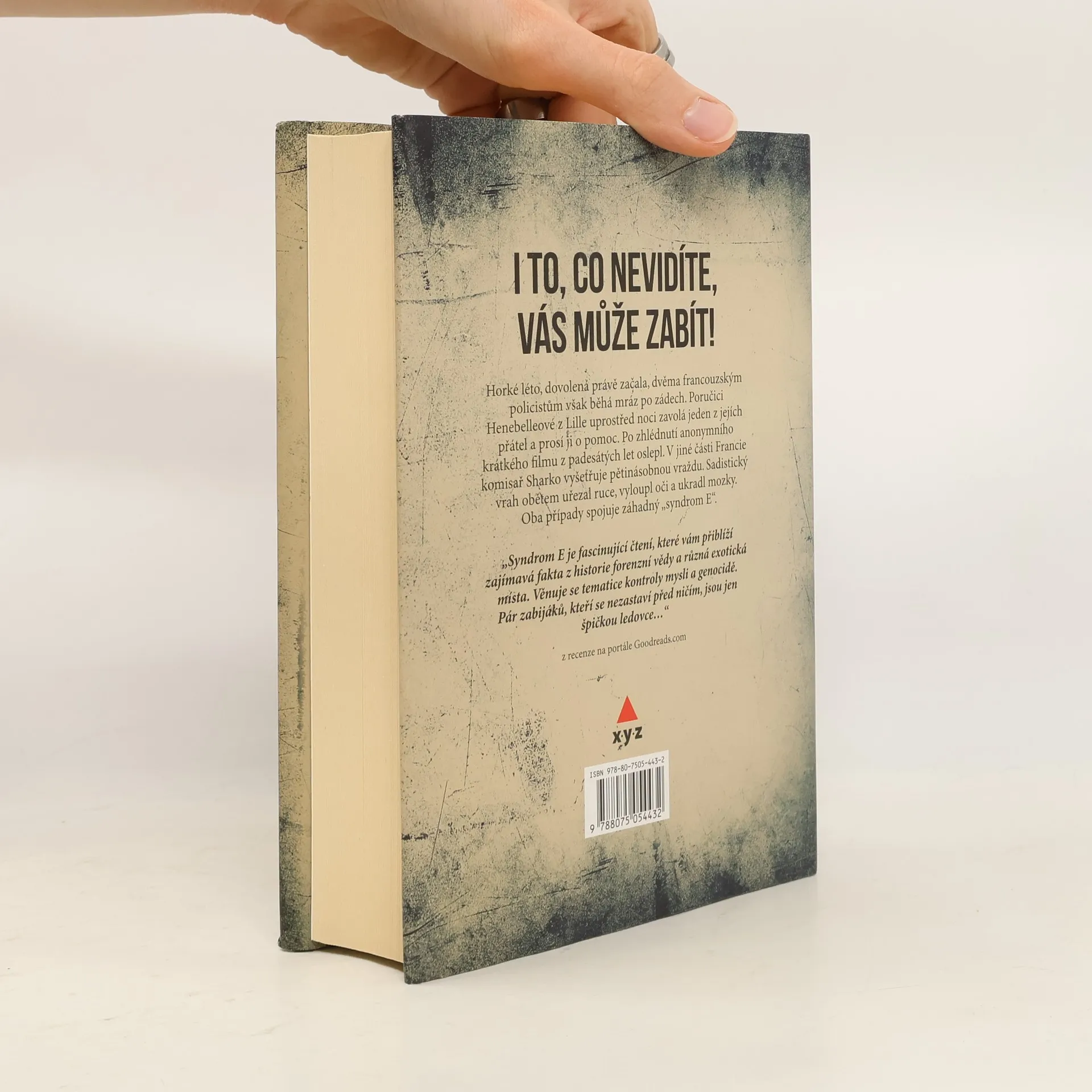 Horké léto, dovolená právě začala, dvěma francouzským policistům však běhá mráz po zádech. A rozhodně není žádným příjemným osvěžením. Lucii Henebelleové, poručici z Lille, uprostřed noci zavolá jeden z jejích přátel. Prosí ji o pomoc, protože oslepl poté, co se podíval na anonymní krátký film z padesátých let, na který náhodně natrefil v pozůstalosti fanatického sběratele filmů. Komisař Franck Shark z Nanterre se zdvihne od svého stolu, za kterým vytváří psychologické profily vrahů, aby šel na sever Francie prozkoumat pět zmrzačených těl, které našli bagry stavební společnosti. Mrtvoly nelze identifikovat, nejenže nemají ruce, sadistický vrah jim vyloupl oči a ukradl mozky. Vyšetřování Lucie Hebelleové a komisaře Sharka spojí záhadný "syndrom E". Při pátrání po jeho původu, projevech a následcích se francouzští policisté dostanou do výzkumné laboratoře neuromarketingu v Belgii, setkají se tváří v tvář s káhirskou chudobou a touhou žít co nejdůstojněji, jakož i s temnou minulostí kanadského sociálního systému.