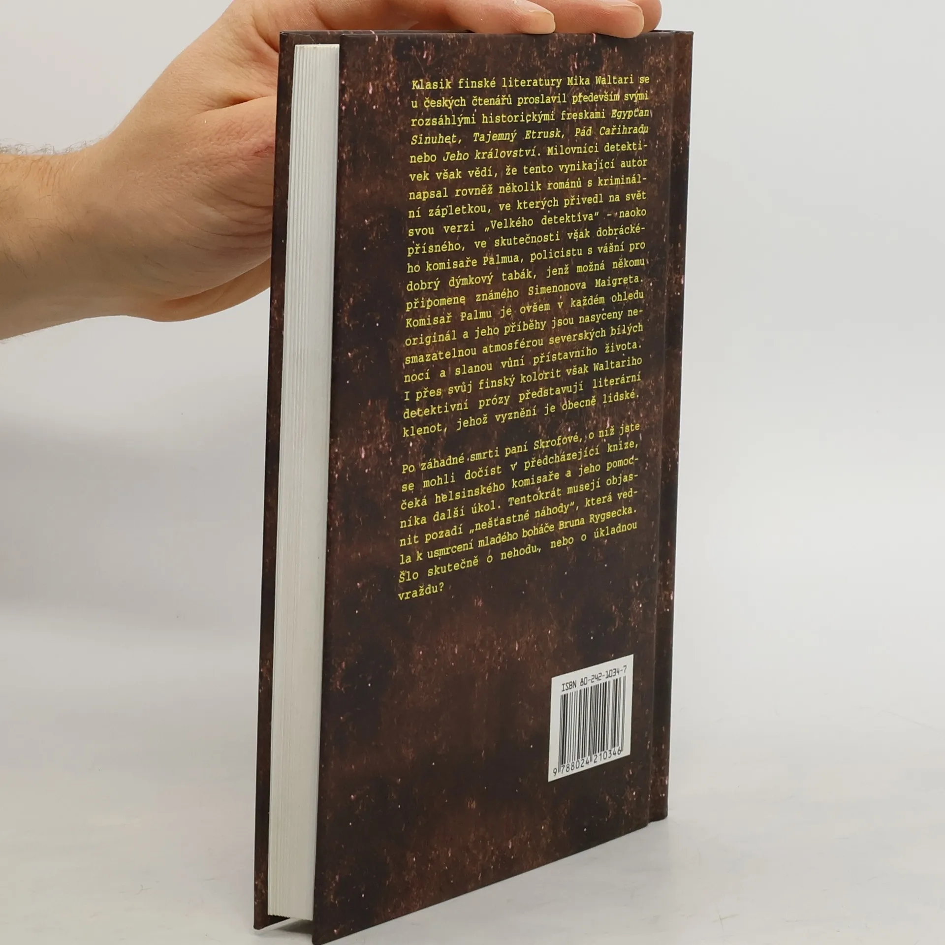 Klasik finské literatury Mika Waltari se u českých čtenářů proslavil především svými rozsáhlými historickými freskami Egypťan Sinuhet, Tajemný Etrusk, Pád Cařihradu nebo Jeho království. Milovníci detektivek však vědí, že tento vynikající autor napsal rovněž několik románů s kriminální zápletkou, ve kterých přivedl na svět svou verzi „Velkého detektiva“ – naoko přísného, ve skutečnosti však dobráckého komisaře Palmua, policistu s vášní pro dobrý dýmkový tabák, jenž možná někomu připomene známého Simenonova Maigreta. Komisař Palmu je ovšem v každém ohledu originál a jeho příběhy jsou nasyceny nesmazatelnou atmosférou severských bílých nocí a slanou vůní přístavního života. I přes svůj finský kolorit však Waltariho detektivní prózy představují literární klenot, jehož vyznění je obecně lidské. Po záhadné smrti paní Skrofové, o níž jste se mohli dočíst v předcházející knize, čeká helsinského komisaře a jeho pomocníka další úkol. Tentokrát musejí objasnit pozadí „nešťastné náhody“, která vedla k usmrcení mladého boháče Bruna Rygsecka. Šlo skutečně o nehodu, nebo o úkladnou vraždu?