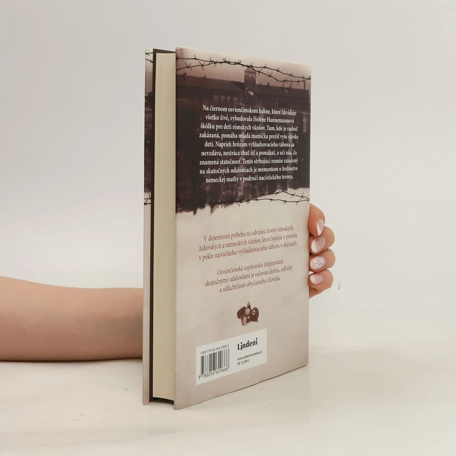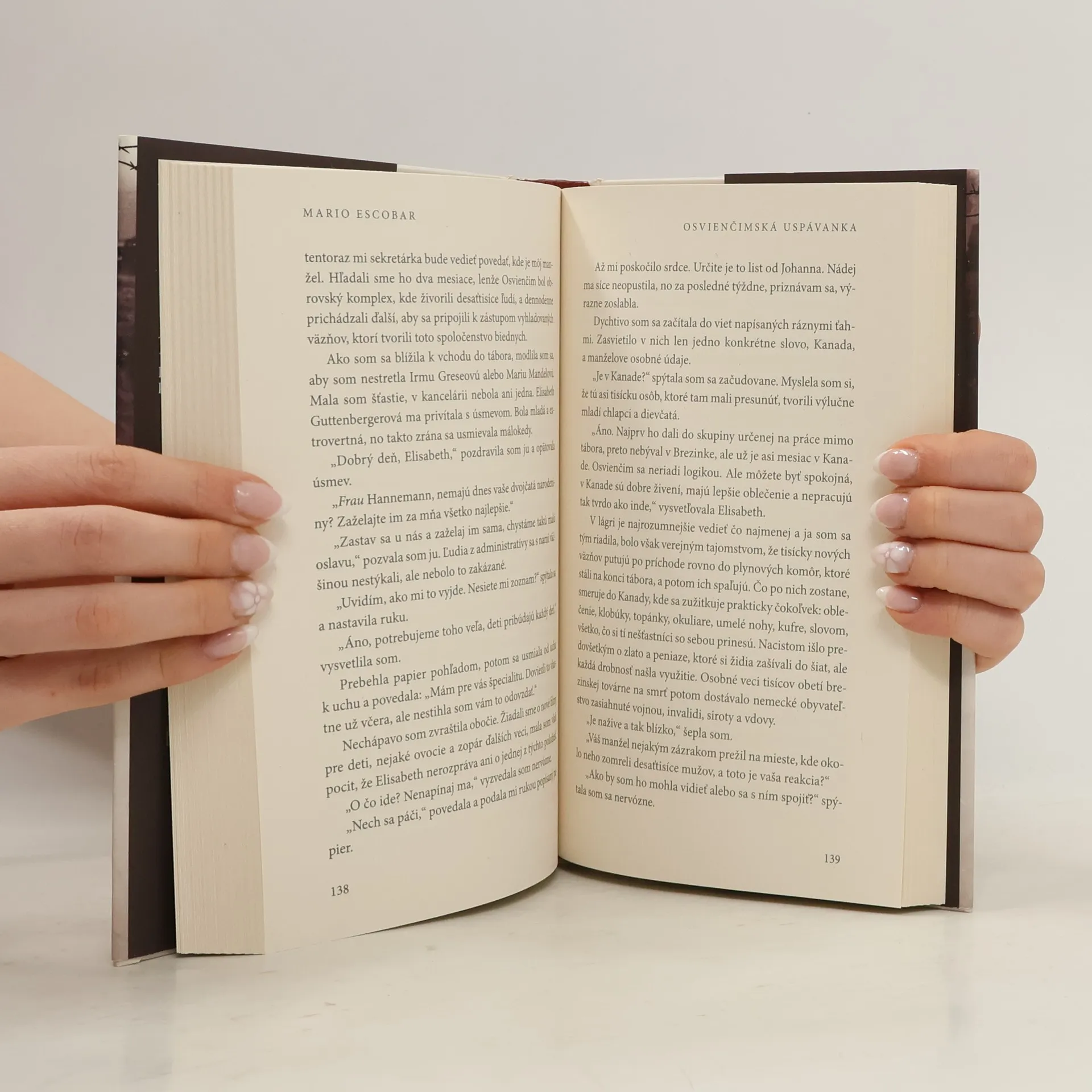 Mario Escobar: Osvienčimská uspávanka Podľa skutočného príbehu statočnej nemeckej zdravotnej sestry, ktorá sa v Osvienčime starala o najmladších väzňov. V jedno obyčajné ráno roku 1943 Helene Hannemannová pripravuje svojich päť detí, keď k nim zrazu vtrhne nemecká polícia, ktorá má na príkaz SS odviesť jej päť detí aj manžela rómskeho pôvodu do väzby. Hoci Helene je Nemka a nijaké bezprostredné nebezpečenstvo jej nehrozí, odmietne opustiť svoju rodinu, čím si spečatí svoj osud spôsobom, o akom by sa jej nikdy ani nesnívalo. Po vyčerpávajúcej ceste Helene a jej rodina prídu do koncentračného tábora v Osvienčime. Jej manžela Johanna od nich odtrhnú, no Helene je odhodlaná za každú cenu chrániť svoju rodinu aj ostatných väzňov. Keď vedenie tábora zistí, že je nielen Nemka, ale ešte aj vyškolená zdravotná sestra, prikážu jej pracovať v nemocnici, ktorú má pod dohľadom sám Dr. Mengele. Helene si nerobí žiadne ilúzie o Mengeleho zámeroch, ale súhlasí, keď jej prikáže organizovať dennú starostlivosť a školu pre rómske deti v tábore. Helene zmobilizuje všetky svoje sily, aby za každú cenu ochránila deti, ktoré jej boli zverené do starostlivosti. Román Osvienčimská uspávanka demonštruje moc ľudskej obetavosti v podmienkach, keď sa zdá, že všetka nádej pohasla.