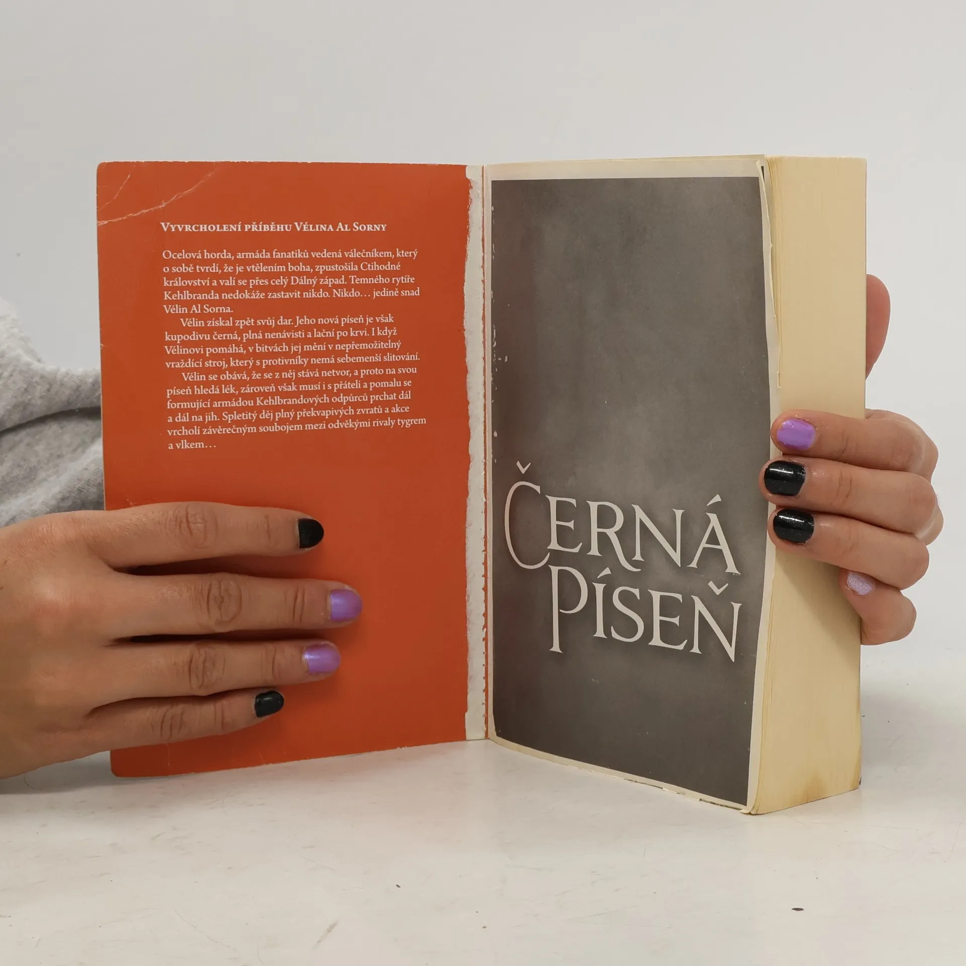 Vyvrcholení příběhu Vélina Al Sorny. Ocelová horda, armáda fanatiků vedená válečníkem, který o sobě tvrdí, že je vtělením boha, zpustošila Ctihodné království a valí se přes celý Dálný západ. Temného rytíře Kehlbranda nedokáže zastavit nikdo. Nikdo… jedině snad Vélin Al Sorna. Vélin získal zpět svůj dar. Jeho nová píseň je však kupodivu černá, plná nenávisti a lační po krvi. I když Vélinovi pomáhá, v bitvách jej mění v nepřemožitelný vraždící stroj, který s protivníky nemá sebemenší slitování. Vélin se obává, že se z něj stává netvor, a proto na svou píseň hledá lék, zároveň však musí i s přáteli a pomalu se formující armádou Kehlbrandových odpůrců prchat dál a dál na jih. Spletitý děj plný překvapivých zvratů a akce vrcholí závěrečným soubojem mezi odvěkými rivaly tygrem a vlkem…