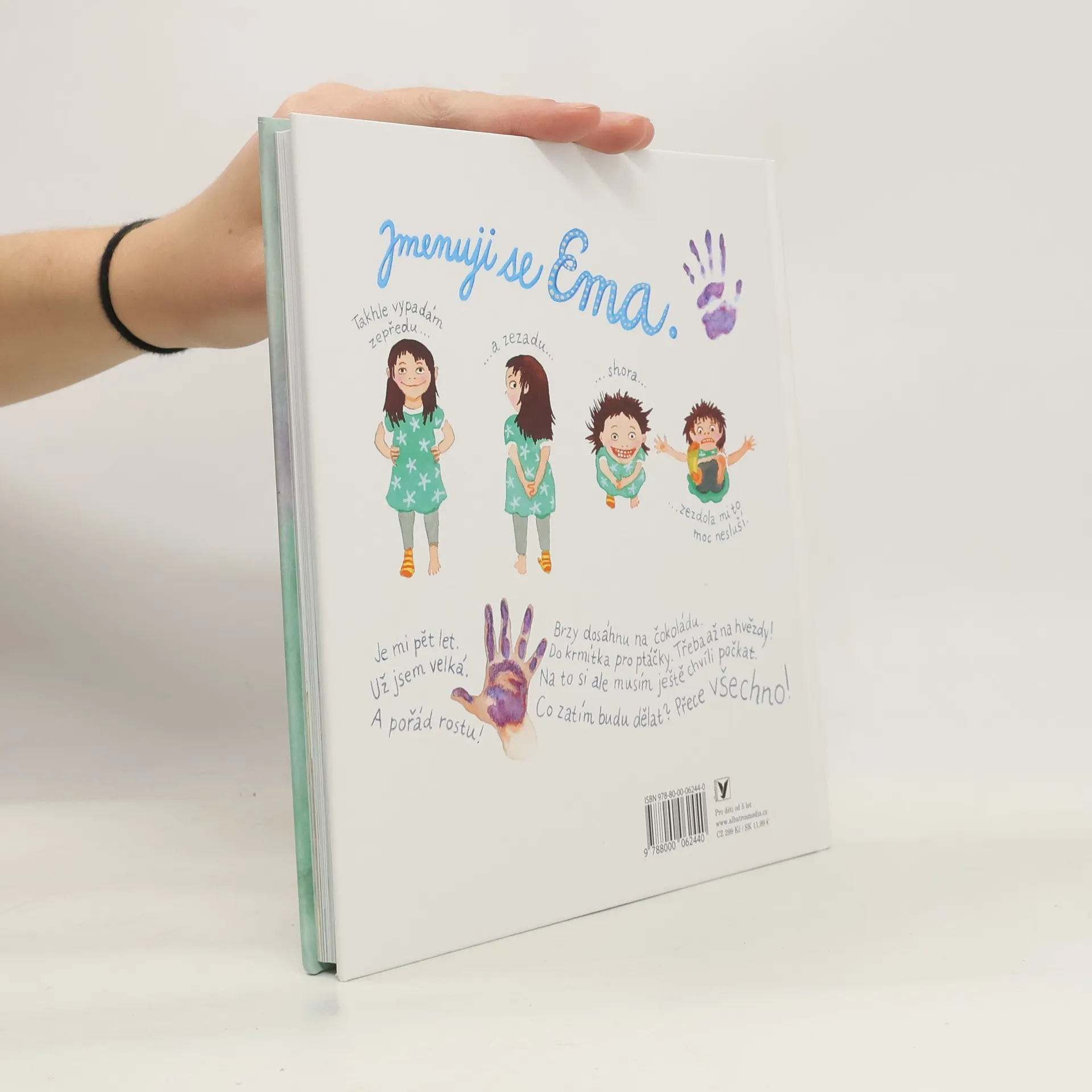 Rok ve školce očima rošťácké holčičky Emy. Tohle je Ema. Je jí pět let. Už je velká. Chodí do školky, kde má kamarádku Áňu, nejlepší kamarádku na světě. A taky Kubu - toho si vezme za manžela, až bude dospělá. A taky je tam paní učitelka Zlatovláska a paní učitelka Mračivka. Ti všichni moc dobře vědí, že s Emou nikdy není nuda. Zkoušeli jste si třeba někdy vylíhnout kuře? Nebo pěstovat v šuplíku žížaly? Byli jste na karnevale za obří dýni? Ne? Nevadí, Ema vám to v téhle knížce všechno dopodrobna vylíčí!