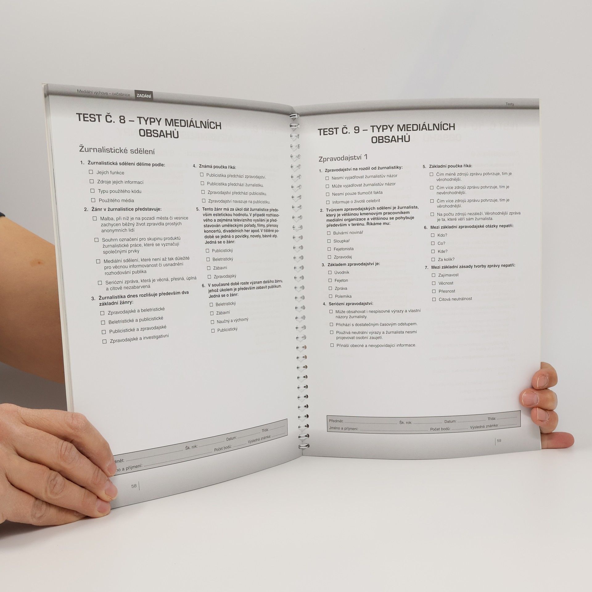 Cvičebnice k předmětu mediální výchova obsahuje nejrůznější příklady, úkoly a otázky, které pokrývají veškerou látku probíranou v učebnici studenta. Všechna cvičení jsou koncipována tak, aby co nejvíce vycházela z reality a bylo možné je použít v praxi. Správné řešení všech úkolů je uvedeno v metodice učitele. Jediná učebnice svého druhu v ČR!
