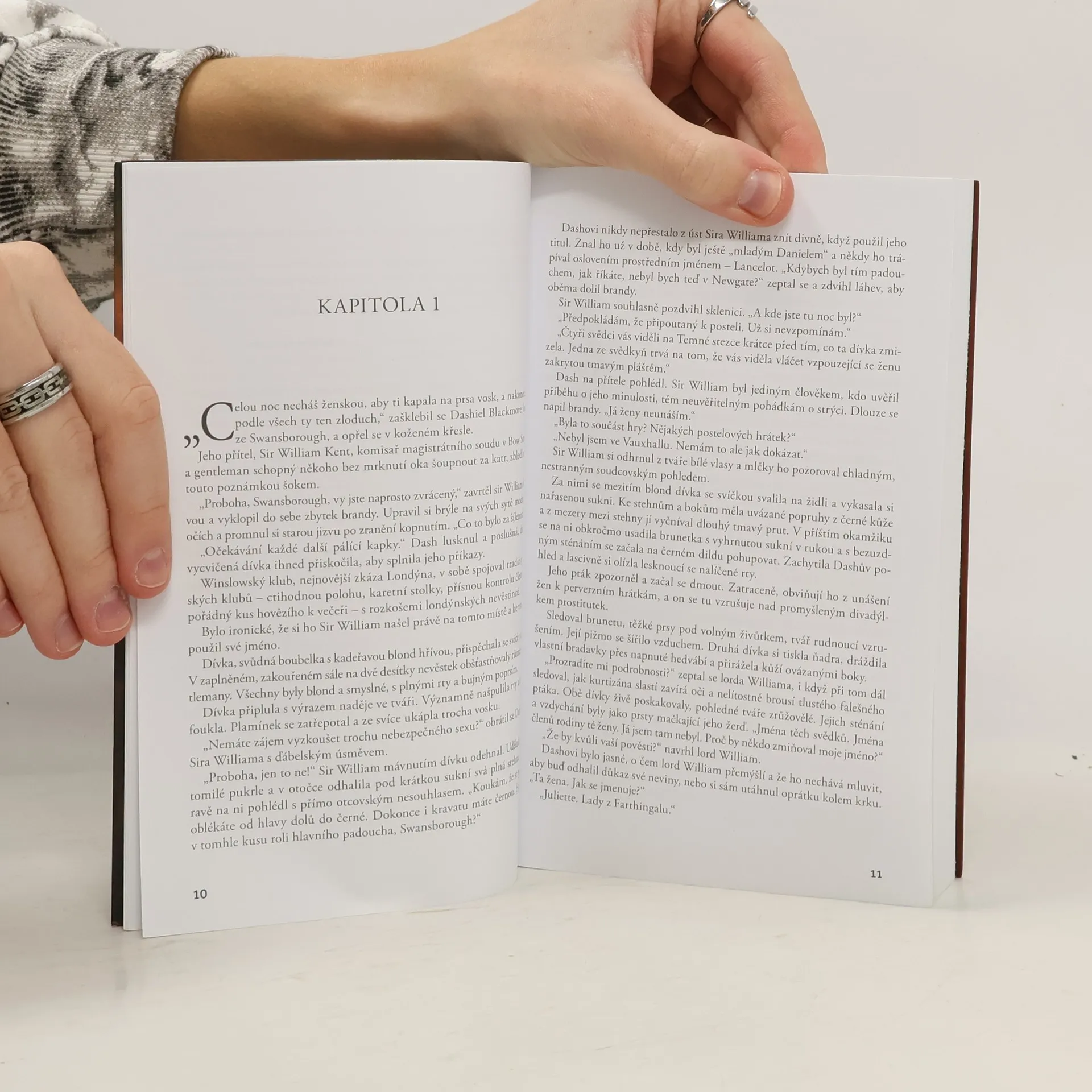 Maryanne Hamiltonová očekávala, že bude šokována, ale chlípné orgie, které najde v salonu paní Masterové, ji nutí přemýšlet, zda nevstoupila do pekla. Zoufale se snaží uniknout a narazí na samotného mistra hříchu - lorda Swansborougha. Fascinována jeho nahotou se touží dotknout každého centimetru jeho dlouhého, tvrdého... těla. A když ji vyzve, aby se přiblížila, rychle se poddá jeho hříšným slibům tělesné rozkoše a smyslné extáze. . .