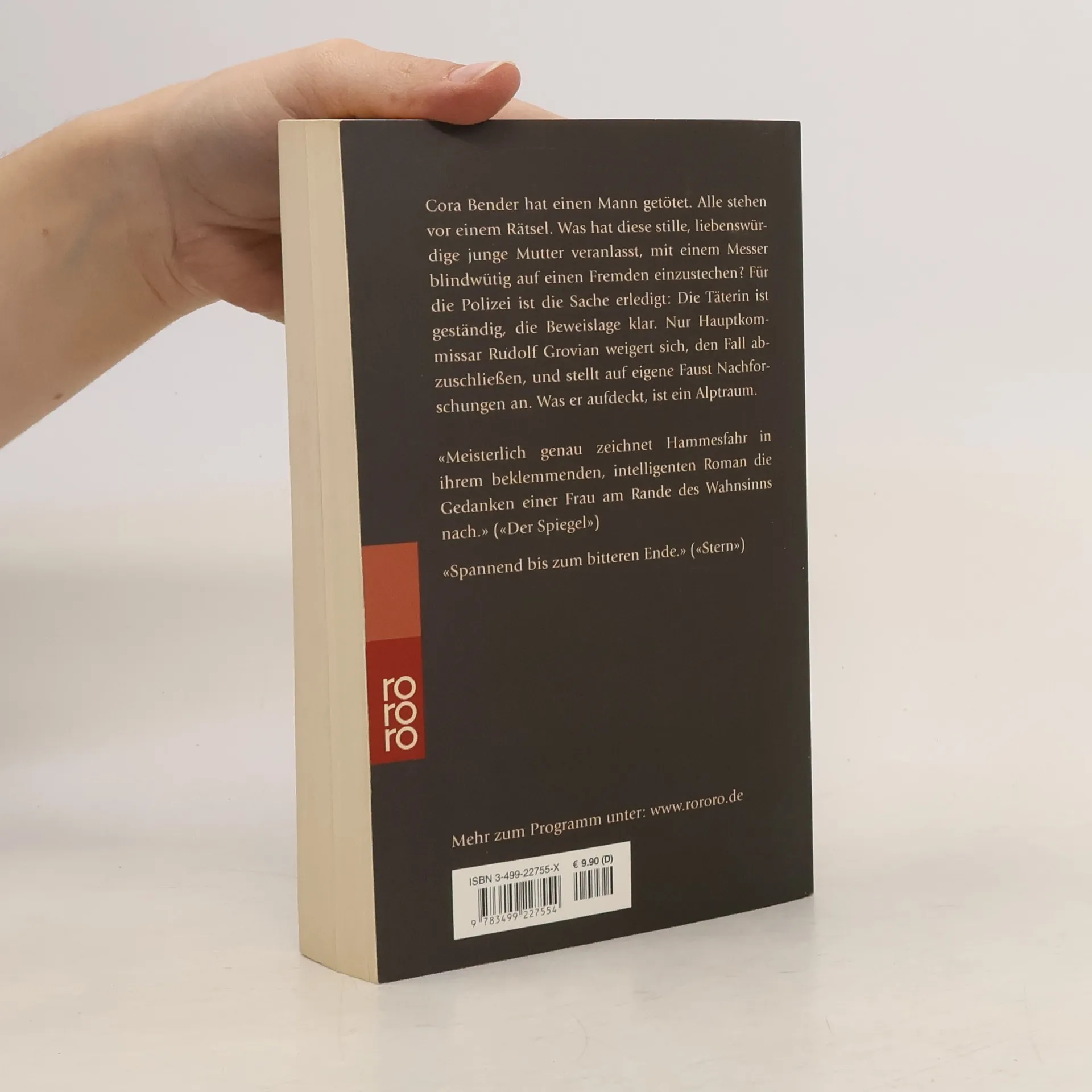 Ein Sommernachmittag am See: Cora Bender macht mit ihrem Mann und dem kleinen Sohn einen Ausflug. Auf den ersten Blick eine ganz normale Familie, die einen sonnigen Tag genießt. Doch Cora Bender hat sich entschlossen zu sterben. Dann jedoch kommt alles ganz anders: Als es Abend wird, lebt Cora Bender noch und muß sich wegen Mordes verantworten. Sie hat einen Mann getötet, von dem sie behauptet, sie habe ihn nie zuvor gesehen. Die Täterin ist geständig, die Beweislage klar. Einzig Hauptkommissar Rudolf Grovian weigert sich, den Fall als Routineangelegenheit zu behandeln. Er stellt auf eigene Faust Nachforschungen an. Was er nach und nach aufdeckt, ist der Alptraum eines Lebens, das zerstört war, bevor es richtig begann.