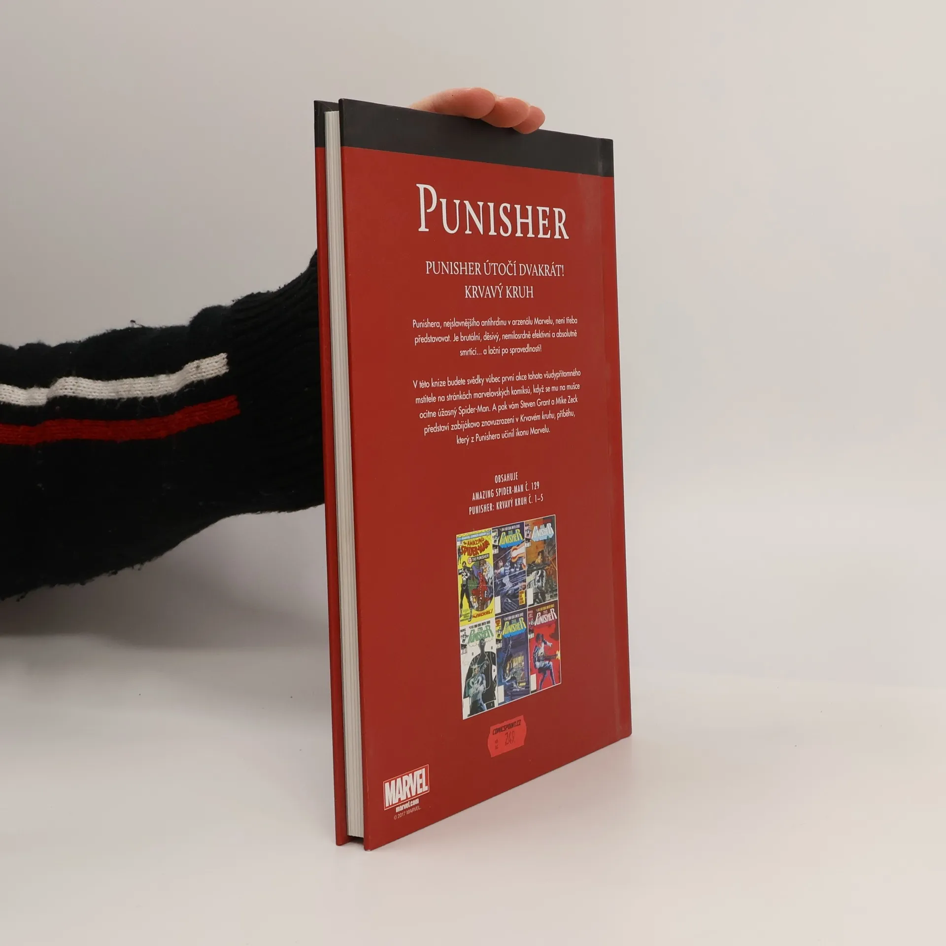 Punishera, nejslavnějšího antihrdinu z arzenálu Marvelu, není třeba představovat. Je brutální, děsivý, nemilosrdně efektivní a absolutně smrtící...a lační po spravedlnosti. V této knize budete svědky vůbec první akce tohto všudypřítomného mstitele na stránkách marvelovských komiksů,když se mu na mušce ocitne úžasný Spider-Man. A pak vám Steven Grant a Mike Zack představí zabijákovo znovuzrození v Krvavém kruhu, příběhu, který z Punishera učinil ikonu Marvelu. Obsahuje: Punisher útočí dvakrát! Punisher: Krvavý kruh