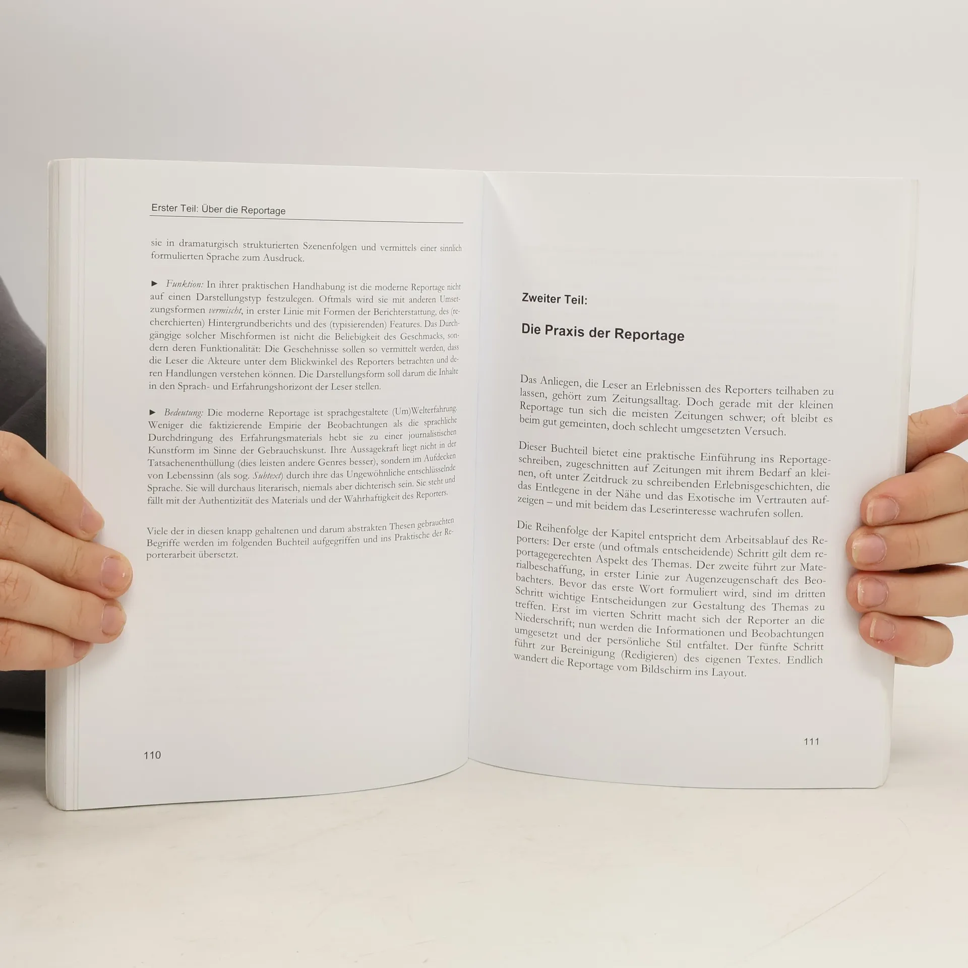Haller geht es vor allem darum, die Reportage nicht als abgehobenes Kunstwerk, sondern als praktikable Form für die Tageszeitung zu etablieren. (Sendeschluss)§§Jedem, der sich mit der journalistischen Königsdisziplin Reportage beschäftigen will, sei Hallers Beitrag nachdrücklich zur Lektüre empfohlen. (Fachjournalist)§§Michael Haller hat das Lehrbuch, das Volontäre wie Studierende gleichermaßen nutzen, grundlegend überarbeitet und neueste Trends berücksichtigt. (journalismus.compact)§§Auf 332 Seiten beleuchtet Haller die Reportage aus jedem erdenklichen Blickwinkel. (Medien selber machen)