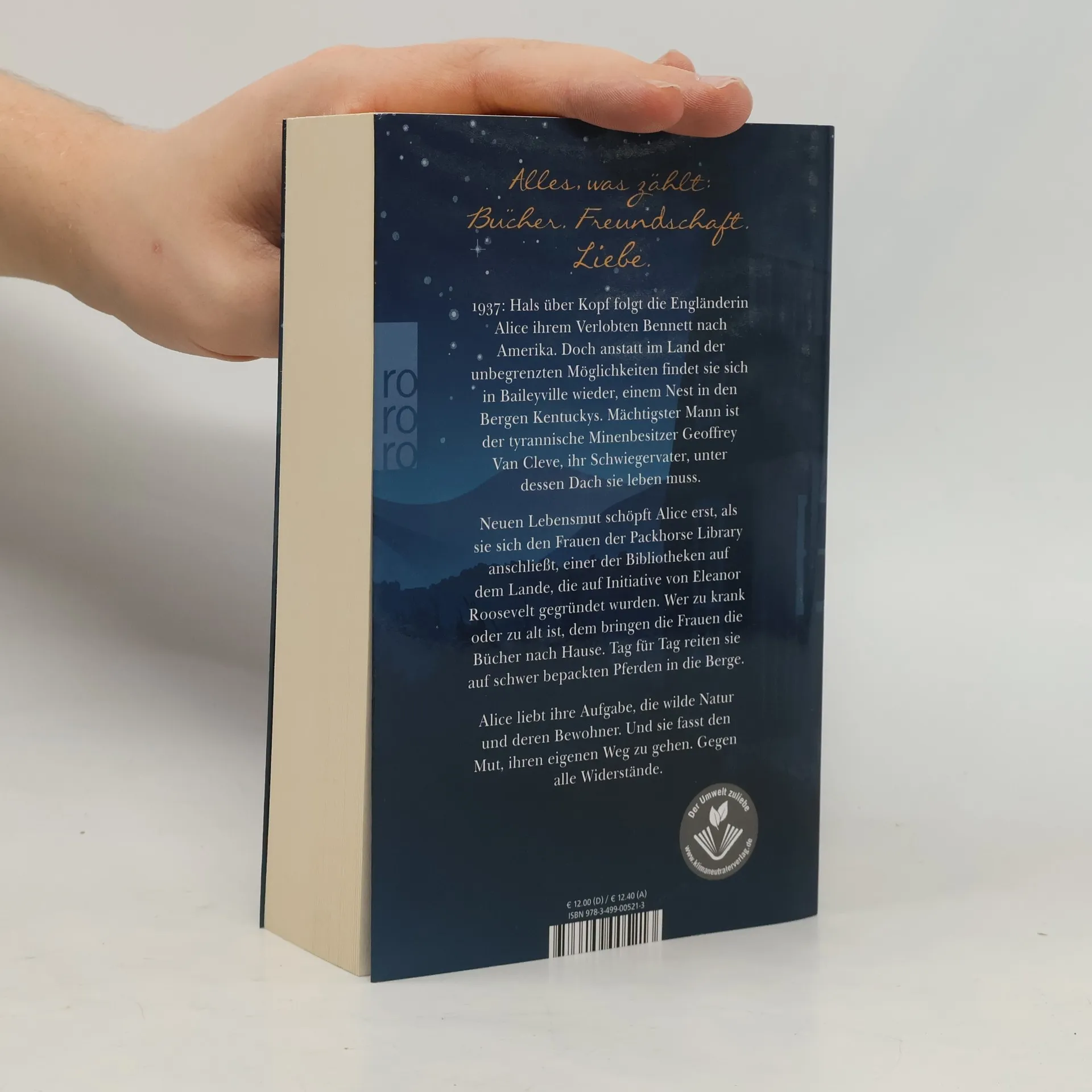 Mit dem weltweiten Bestseller «Ein ganzes halbes Jahr» eroberte Jojo Moyes die Herzen von Millionen Leser: innen. In ihrem neuesten Roman schreibt sie über fünf starke Frauen, die um ihr persönliches Glück kämpfen. Gegen die Widerstände einer Zeit, i n der Bildung und Freiheit für Frauen alles andere als selbstverständlich waren.   1937: Hals über Kopf folgt die Engländerin Alice ihrem Verlobten Bennett nach Amerika. Doch anstatt im Land der unbegrenzten Möglichkeiten findet sie sich in Baileyville wieder, einem Nest in den Bergen Kentuckys. Mächtigster Mann ist der tyrannische Minenbesitzer Geoffrey Van Cleve, ihr Schwiegervater, unter dessen Dach sie leben muss. Neuen Lebensmut schöpft Alice erst, als sie sich den Frauen der Packhorse Library anschließt, einer der Bibliotheken auf dem Lande, die auf Initiative von Eleanor Roosevelt gegründet wurden. Wer zu krank oder zu alt ist, dem bringen die Frauen die Bücher nach Hause. Tag für Tag reiten sie auf schwer bepackten Pferden in die Berge. Alice liebt ihre Aufgabe, die wilde Natur und deren Bewohner. Und sie fasst den Mut, ihren eigenen Weg zu gehen. Gegen alle Widerstände. Eine Feier des Lesens und der Freundschaft. Eine große Liebesgeschichte. Ein Buch, das Mut macht.