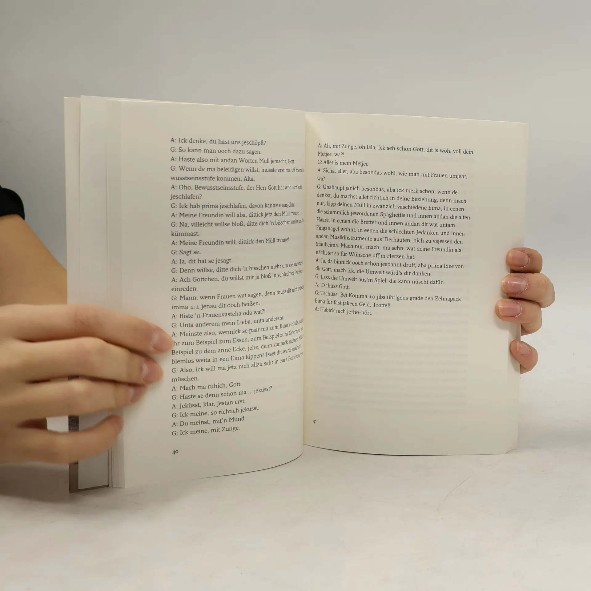 Gott wohnt in der Choriner Straße 61. Er ist im Mai 2004 umgezogen, von der 63 in die 61. Viele kennen ihn sicher noch aus der 63. Ahne wohnt in der Nähe und unterhält sich öfter mit Gott. Um nun der Welt zu zeigen, dass Gott nicht so ist, wie manche denken, haben sich Menschen entschlossen, diese Gespräche im Radio zu senden, auf der Bühne zu präsentieren und jetzt auch noch als Buch herauszubringen. Hoffentlich fühlt sich niemand bemüßigt, deshalb gleich Fahnen zu verbrennen, Schokolade zu boykottieren oder den Autor zu ärgern. Das wäre sicher nicht in Gottes Sinne.