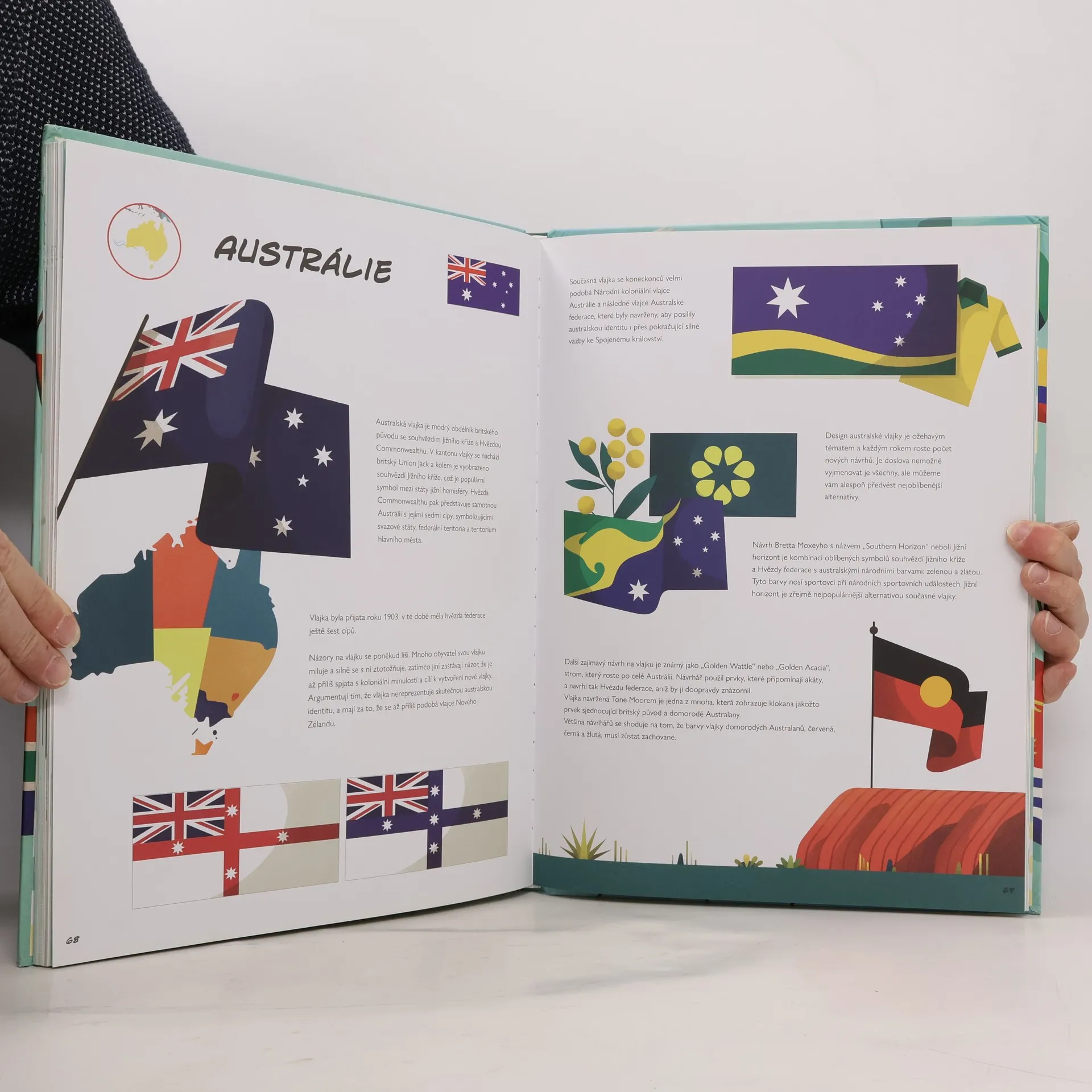 Proč má Kanada uprostřed vlajky javorový list? Co nese v zobáku orel na bílém pozadí mexické vlajky? Je pouhou náhodou, že všechny země Středního východu mají vlajky ve stejných barvách? Na tyto a mnohé další otázky odpoví tento bohatě ilustrovaný svazek plný historických a zeměpisných informací, ale také mnohých zajímavostí o detailech jednotlivých vlajek a národech, kterým patří. V barvách, symbolech a vzorech na vlajkách se skrývají legendy staré jako Země sama. Vydejte se na cestu (nejen) napříč kontinenty a zeměmi, do světa mýtů a historie, a poznejte svět, ve kterém žijeme.