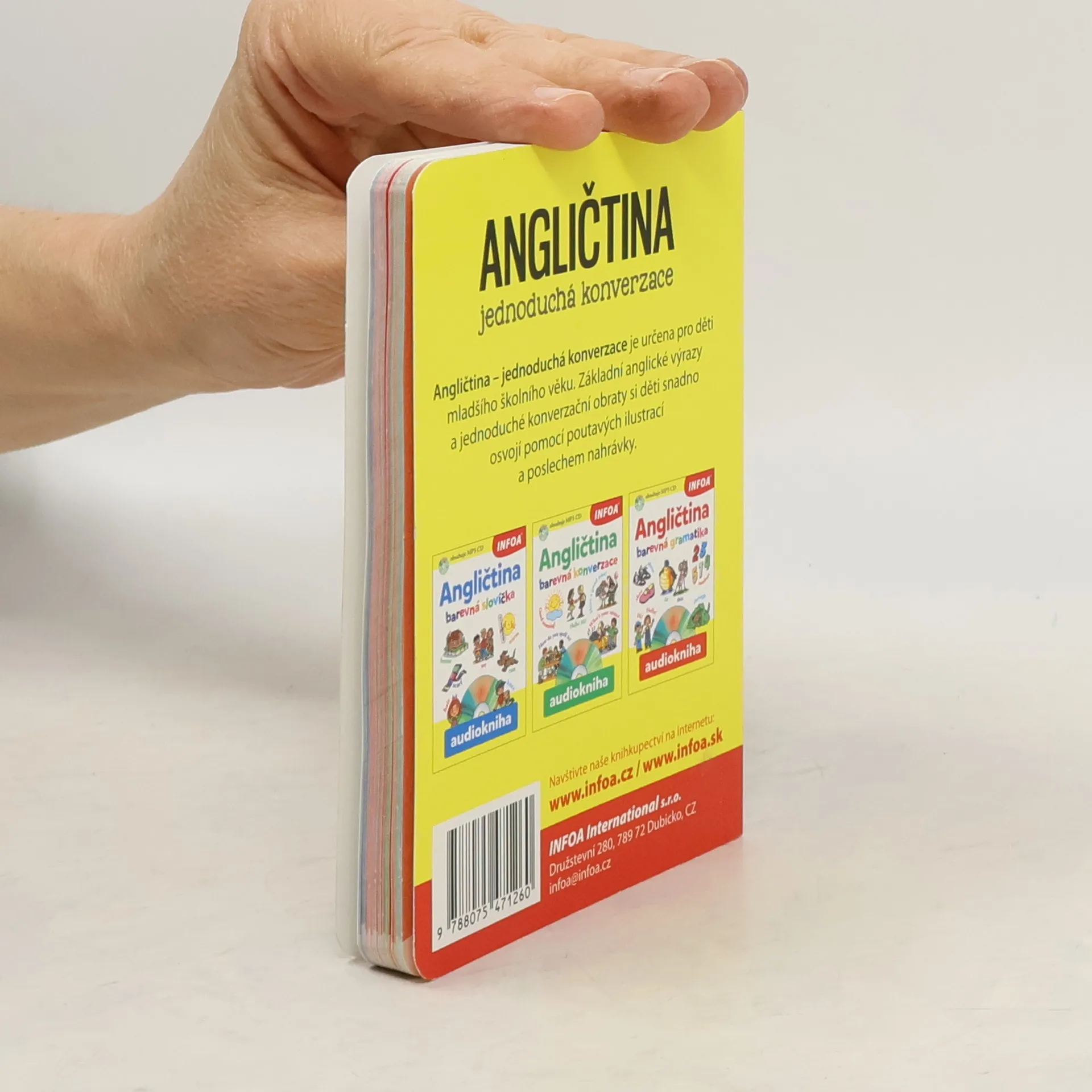 Angličtina – jednoduchá konverzace je určena pro děti mladšího školního věku. Základní anglické výrazy a jednoduché konverzační obraty si děti snadno osvojí pomocí poutavých ilustrací a poslechem nahrávky.