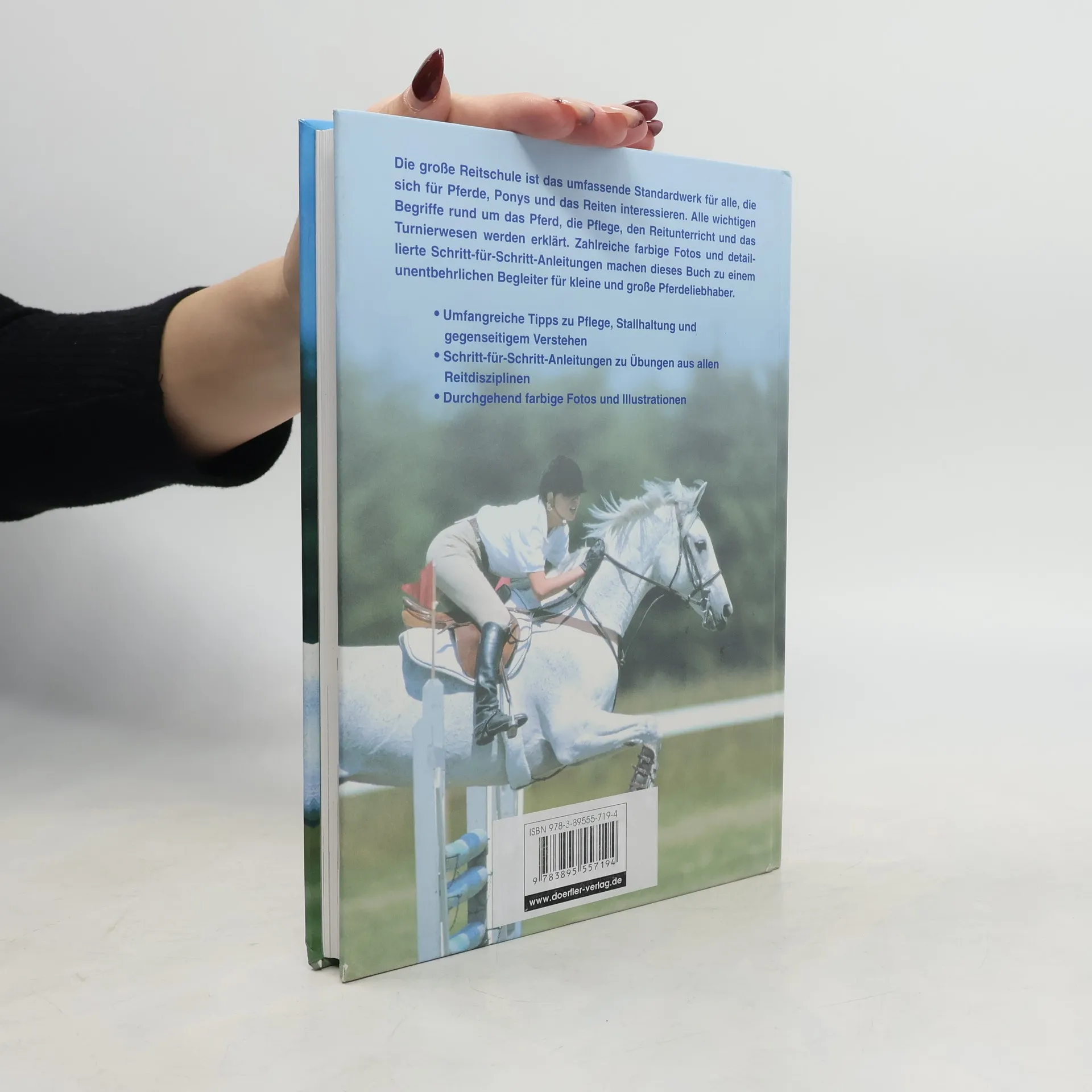 Die große Reitschule ist das umfassende Standardwerk für alle, die sich für Pferde, Ponys und das Reiten interessieren. Alle wichtigen Begriffe rund um das Pferd, die Pflege, den Reitunterricht und das Turnierwesen werden erklärt. Zahlreiche farbige Fotos und detaillierte Schritt-für-Schritt-Anleitungen machen dieses Buch zu einem unentbehrlichen Begleiter für kleine und große Pferdeliebhaber.§- Umfangreiche Tipps zu Pflege, Stallhaltung und gegenseitigem Verstehen§- Schritt-für-Schritt-Anleitungen zu Übungen aus allen Reitdisziplinen§- Durchgehend farbige Fotos und Illustrationen