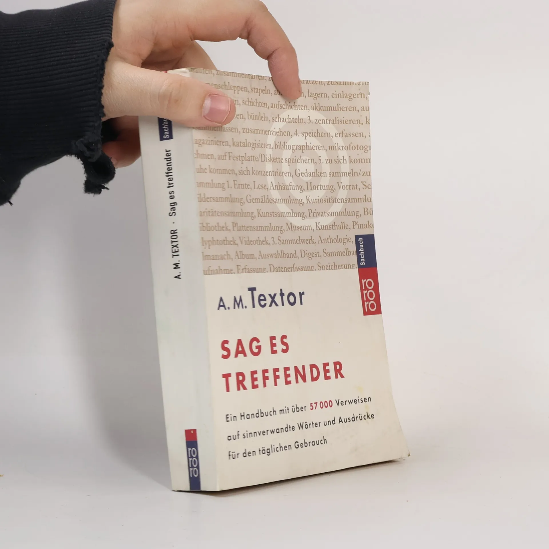 Ein unentbehrliches Nachschlagewerk, das unseren Wortschatz bereichert und uns in über 57 000 Fällen Verweise auf den treffenden Ausdruck anbietet, wenn wir beim täglichen Schreiben oder Diktieren in Verlegenheit geraten.