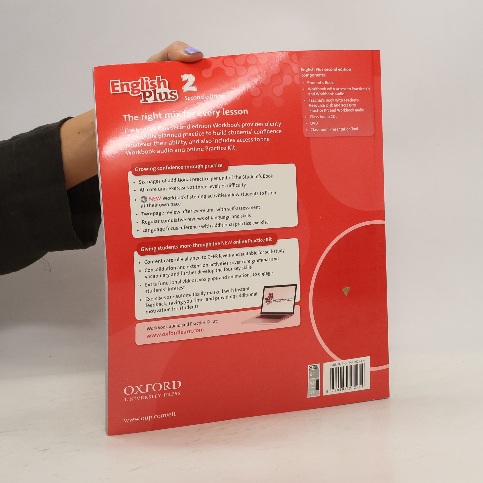 The Workbook contains six pages of additional practice for each of the Student's Book units. The Starter unit has eight pages. This comprises exercises for vocabulary, grammar, reading and writing at three levels of difficulty. A two-page Progress review after every unit with self-assessments and I can ... statements. Four pages of Cumulative review which provide revision of all the language and skills studied up to a particular point in the Student's Book. · A Reference section which includes: a Language focus reference with additional practice exercises for each grammar point; an alphabetical Wordlist with illustrations and a phonetic chart; a Key phrases section with Key phrases from the Student's Book; an Irregular verbs list. A Student access card to the online Practice kit for additional self-study practice.