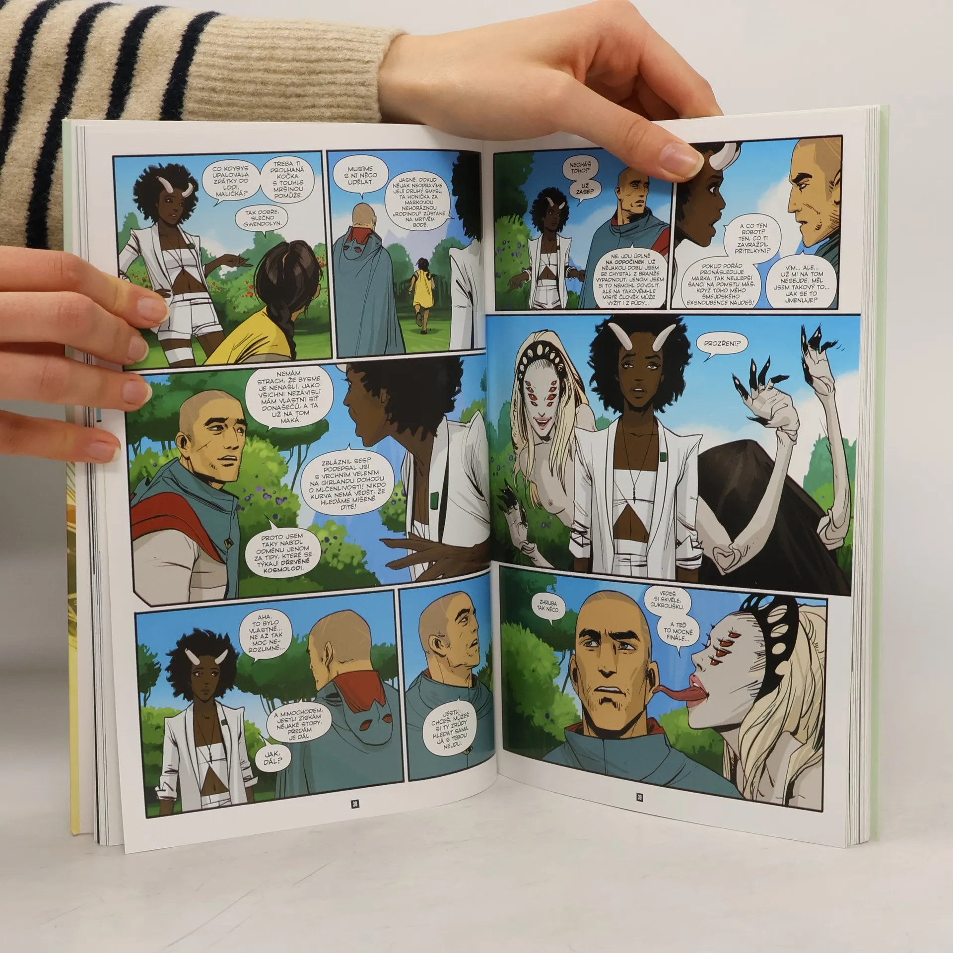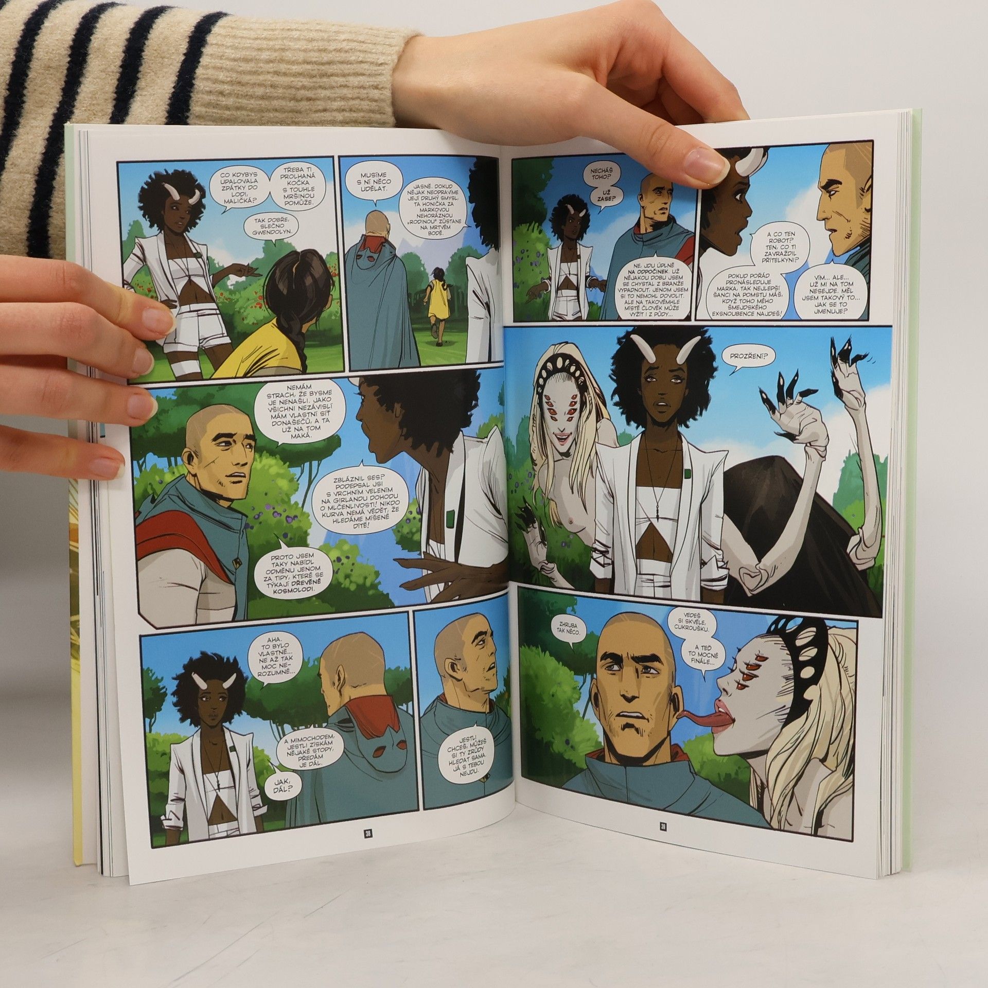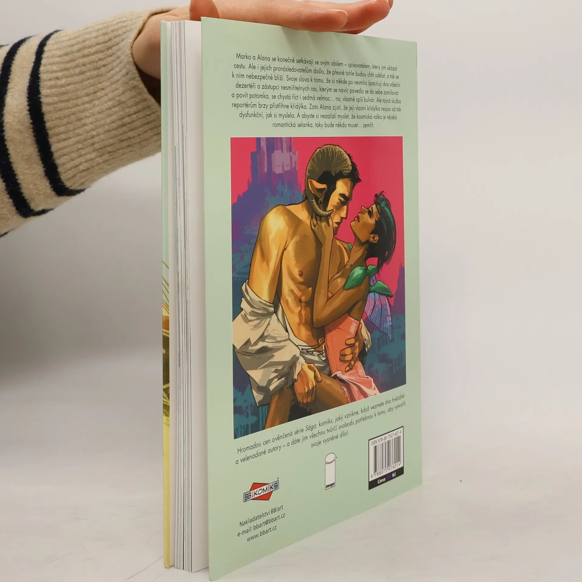 Ve třetím svazku mnoha cenami ověnčeného eposu se Marko a Alana konečně setkávají se svým idolem – spisovatelem, který jim ukázal cestu. Ale i jejich pronásledovatelům došlo, že přesně tohle budou chtít udělat, a tak se k nim nebezpečně blíží. Svoje slovo k tomu, že si někde po vesmíru špacírují dva váleční dezertéři a zástupci nesmiřitelných ras, kterým se navíc povedlo se do sebe zamilovat a povít potomka, se chystá říct i sedmá velmoc… no, vlastně spíš bulvár. Ale tajná služba reportérům brzy přistřihne křidýlka. Zato Alana zjistí, že její vlastní křidýlka nejsou až tak dysfunkční, jak si myslela. A abyste si nezačali myslet, že kosmická válka je nějaká romantická selanka, taky bude někdo muset… zemřít. Je to fantasy? Je to SF? Kdo vlastně ví… a koho to vlastně zajímá! Je to Sága, jedna z nejlepších původních komiksových sérií nového tisíciletí. Spolu s davy fanoušků po celém světě sledujte osudy Marka a Alany, milenců a čerstvých rodičů, kteří přestali být vojáky v dlouhé válce, jež zachvátila skoro celý vesmír, a stali se dezertéry, které nemilosrdně pronásledují obě strany konfliktu. Protože pro mocipány by nebylo moc příjemné, kdyby se svět dozvěděl, že zástupci dvou nesmiřitelných ras se mohou nejen milovat, ale také plodit potomky…