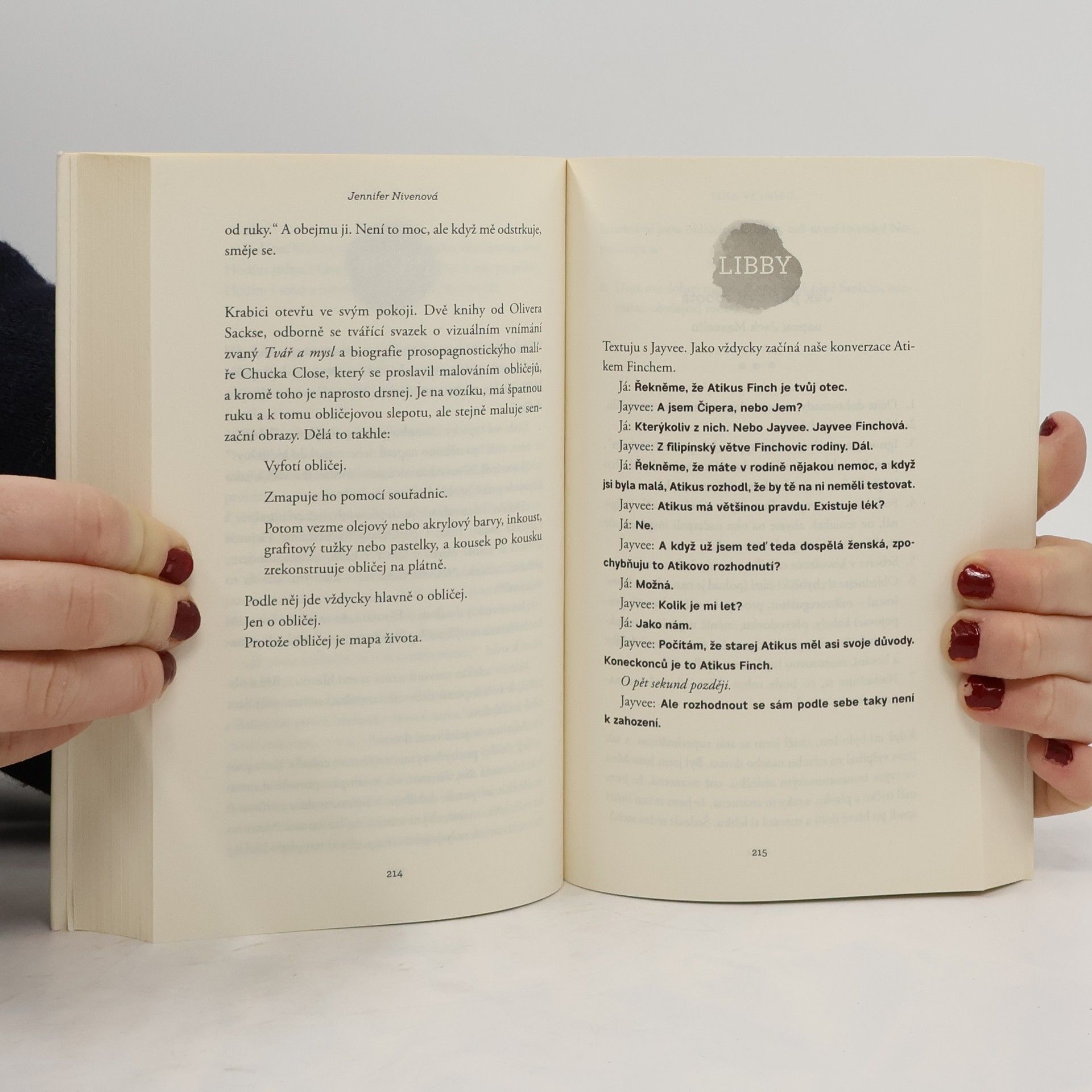 Okouzlující love story, která vás dostane! Každý si myslí, že dobře zná Libby Stroutovou – tuhle odvážnou dívku s úctyhodnou váhou, jejíž fotku s titulkem „nejtlustší teenagerka Ameriky“ otiskly před dvěma roky snad všechny noviny v USA. Libby se ale od té doby změnila – a nejen co se váhy týče. Stejně tak si každý myslí, že dobře zná i Jacka Masselina. Mezi spolužáky je oblíbený, randí s nejkrásnější holkou ze školy a na první pohled to může vypadat, že má všechno, co si může přát. Až na to, že trpí prosopagnosií – není schopný rozeznávat lidské tváře a svůj handicap samo sebou skrývá. Když tedy na sebe Stroutová a Masselin rázem narazí ve škole, svět se obrátí vzhůru nohama – minimálně Van Burenova střední. A malér je na světě!
