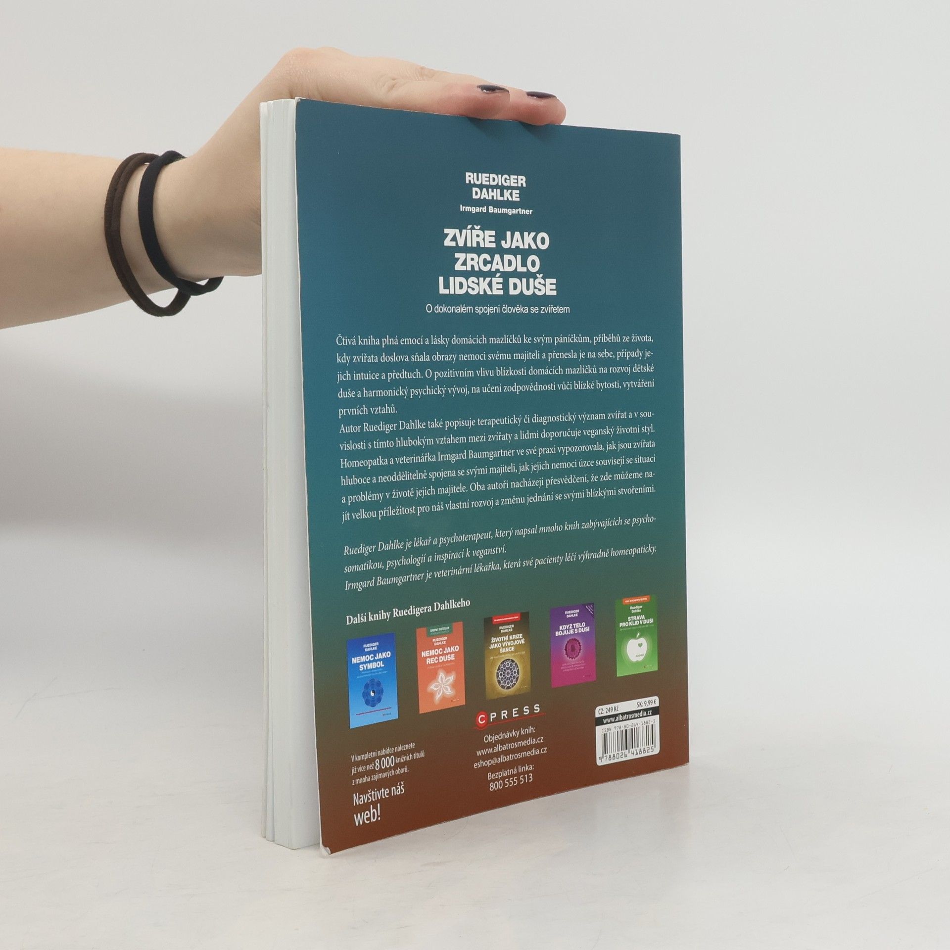 Čtivá kniha plná emocí a lásky domácích mazlíčků ke svým páníčkům, příběhů ze života, kdy zvířata doslova sňala obrazy nemoci svému majiteli a přenesla je na sebe, případy jejich intuice a předtuch. O pozitivním vlivu blízkosti domácích mazlíčků na rozvoj dětské duše a jeho harmonický psychický vývoj, na učení zodpovědnosti vůči blízké bytosti, vytváření prvních vztahů. Autor Ruediger Dahlke také popisuje terapeutický či diagnostický význam zvířat a v souvislosti s tímto hlubokým vztahem mezi zvířaty a lidmi doporučuje veganský životní styl. Homeopatka a veterinářka Irmgard Baumgartner ve své praxi vypozorovala, jak jsou zvířata hluboce a neoddělitelně spojena se svými majiteli, jak jejich nemoci úzce souvisejí se situací a problémy v životě jejich majitele. Oba autoři nacházejí přesvědčení, že zde můžeme najít velkou příležitost pro náš vlastní rozvoj a změnu jednání se svými blízkými stvořeními. Ruediger Dahlke je lékař a psychoterapeut, který napsal mnoho knih zabývající se psychosomatikou, psychologiíí a inspirací k veganství. Irmgard Baumgartner je veterinární lékařka, která své pacienty léčí výhradně homeopaticky.