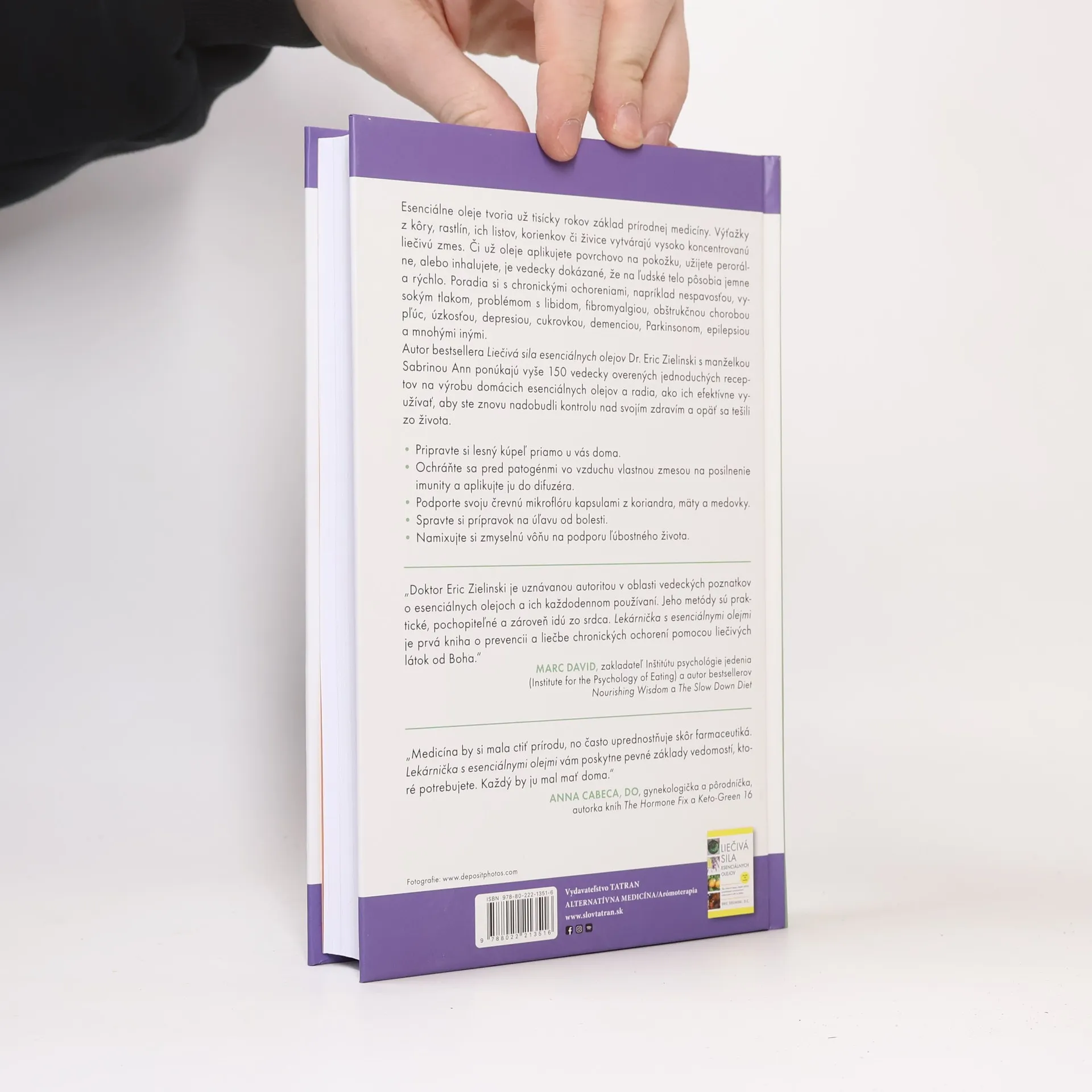 Esenciálne oleje nie sú žiadnou novinkou. Už tisícky rokov tvoria základ prírodnej medicíny. V súčasnosti pomáhajú pacientom trpiacim chronickými ochoreniami, ako sú migrény, nespavosť, vysoký tlak, cukrovka, depresia, chronická obštrukčná choroba pľúc alebo problémy s libidom. Dr. Eric Zielinski, autor bestselleru Liečivá sila esenciálnych olejov, spolu so svojou manželkou Sabrinou ponúkajú vyše 150 vedecky overených receptov na boj proti základným príčinám všetkých ochorení, ako sú stres, úzkosť a zápal. Okrem toho sú spomínané oleje vhodné na liečenie a zmiernenie symptómov 25 chronických ochorení napríklad nespavosť, problémy s libidom, fibromyalgiu, chronickú obštrukčnú chorobu pľúc, úzkosť, depresiu, cukrovku, demenciu a mnohé iné. Na ich výrobu sa užíva viac ako 70 aromatických rastlín od copaiby a cintrónovej trávy až po kukrumu a ylang ylang