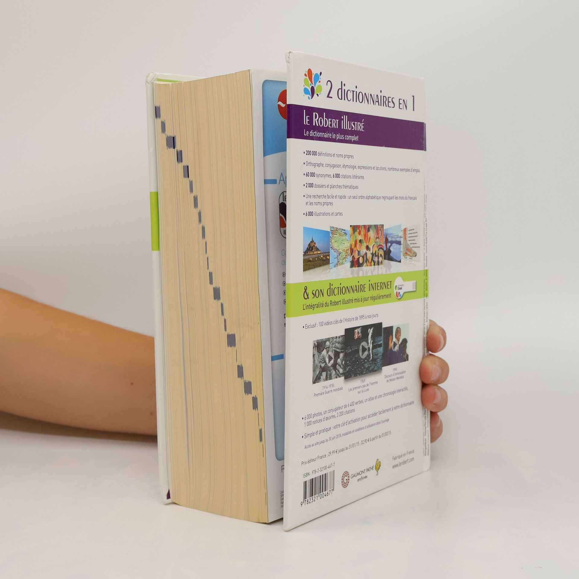 Le dictionnaire encyclopédique le plus complet : 200 000 définitions et noms propres, 60 000 synonymes, 6 000 citations littéraires 2 000 dossiers et planches thématiques 6 000 illustrations et cartes Et son dictionnaire internet avec de nombreux compléments exclusifs : 100 vidéos clés de l'Histoire sélectionnées et légendées par la rédaction du Robert en partenariat avec Gaumont Archives L'intégralité des contenus du Robert illustré actualisés pendant 4 ans Simple et pratique : votre clé d'accès pour activer et utiliser Dixel