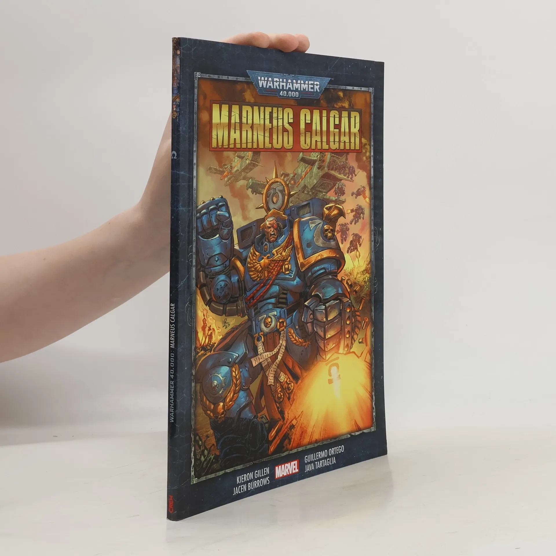 SÁGA WARHAMMER 40 000 PŘICHÁZÍ DO MARVELU! V ponuré temnotě vzdálené budoucnosti existuje pouze válka. Marneus Calgar, legendární velmistr kapituly Ultramariňáků, vede své elitní vesmírné mariňáky proti největším hrozbám, které ohrožují lidstvo, v galaxii pohlcené nekonečným konfliktem. Scenárista Kieron Gillen (Uncanny X-Men, Journey into Mystery, The Wicked + The Divine) vrhá čtenáře po hlavě do příběhu 40K a představuje jim dosud neodvyprávěný příběh původu Marnea Calgara – od jeho počátků na Nova Thulium a kampaní v Černých křížových výpravách až po odhalení záhady Černého oltáře. Tehdy se znovu vynoří smrtící hrozba z Calgarovy minulosti, aby ohrozila přítomnost systému Ultramar! Komiks je plný nových i fanoušky oblíbených postav a nabízí vedle podmanivého pohledu na vznik vesmírných mariňáků tolik dalších tajemství, že by se nevešly ani do Hromového jestřába. Pro dlouholeté nadšence je jeho četba nutností – a zároveň jde o dokonalý základ pro ty, kteří vstupují do univerza WARHAMMER 40 000 poprvé! Obsahuje sešity Warhammer 40,000: Marneus Calgar č. 1–5, jejichž autory jsou Kieron Gillen, Jacen Burrows, Guillermo Ortego a Java Tartaglia.