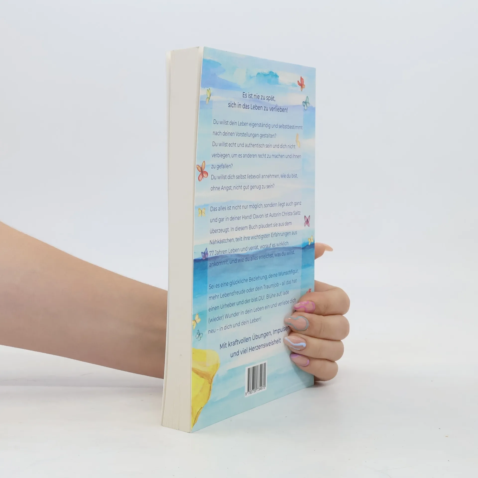 Es ist nie zu spät, sich in das Leben zu verlieben! Du willst dein Leben selbst in die Hand nehmen und es eigenständig nach deinen Vorstellungen gestalten? Echt und authentisch sein und dich nicht verbiegen, um es anderen recht zu machen und ihnen zu gefallen? Dich selbst liebevoll annehmen, wie du bist, ohne Angst, nicht gut genug zu sein? Das alles ist möglich und es liegt in deiner Hand. Davon ist die Autorin Christa Saitz überzeugt. In diesem Buch plaudert sie aus dem Nähkästchen, teilt die wichtigsten Erfahrungen aus 77 Jahren Leben und verrät, worauf es im Leben ankommt und wie du alles erreichst, was du willst. Glückliche Beziehungen, Wunschfigur, Lebensfreude, Traumjob, denn all das hat einen Urheber und der bist du. Blühe auf, lade wieder Wunder in dein Leben ein und verliebe dich neu, in dich und dein Leben! Mit kraftvollen Übungen, Impulsen und viel Herzensweisheit.