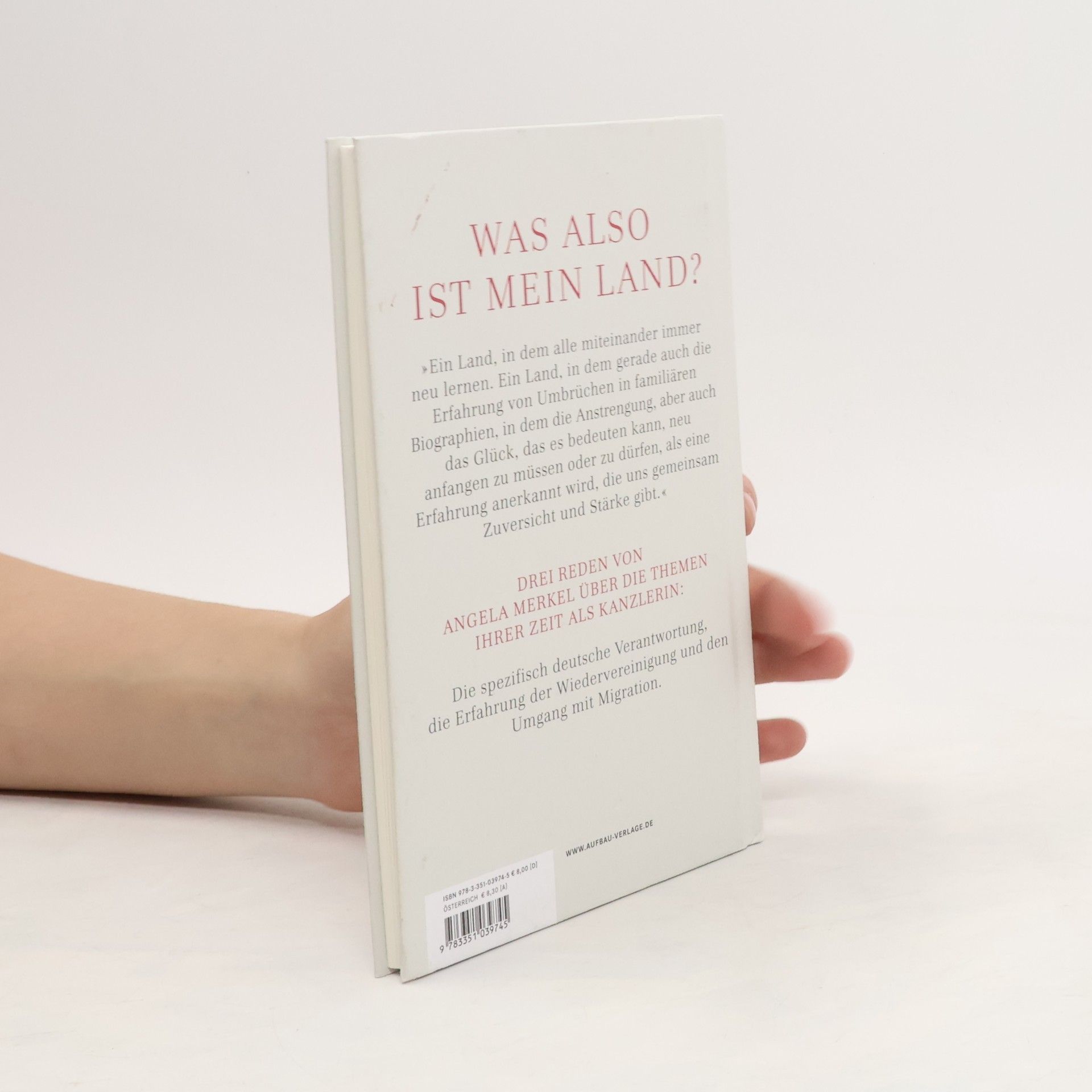 Ein Land, in dem alle miteinander immer neu lernen. Ein Land, in dem gerade auch die Erfahrung von Umbrüchen in familiären Biografien, in dem die Anstrengung, aber auch das Glück, das es bedeuten kann, neu anfangen zu müssen oder zu dürfen, als eine Erfahrung anerkannt wird, die uns gemeinsam Zuversicht und Stärke gibt.Drei Reden von Angela Merkel über die Themen ihrer Zeit als Kanzlerin: die spezifisch deutsche Verantwortung, die Erfahrung der Wiedervereinigung und den Umgang mit Migration.