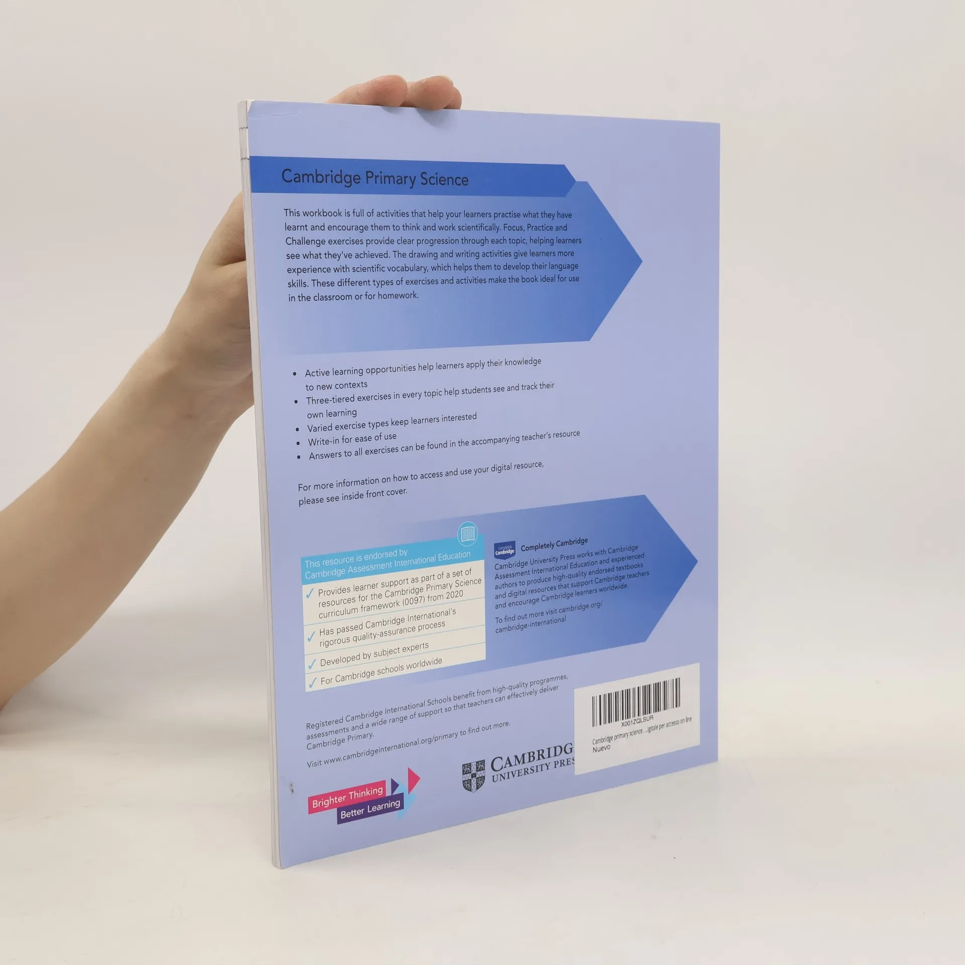 Discover our new resources for the Cambridge International Primary and Lower Secondary Curriculum Frameworks These workbooks are full of activities that help your learners practise what they have learnt and encourage them to think and work scientifically. Focus, Practice and Challenge exercises provide clear progression through each topic, helping learners see what they've achieved. The drawing and writing activities give learners more experience with scientific vocabulary, which helps them to develop their language skills. These different types of exercises and activities make the book ideal for use in the classroom or for homework.