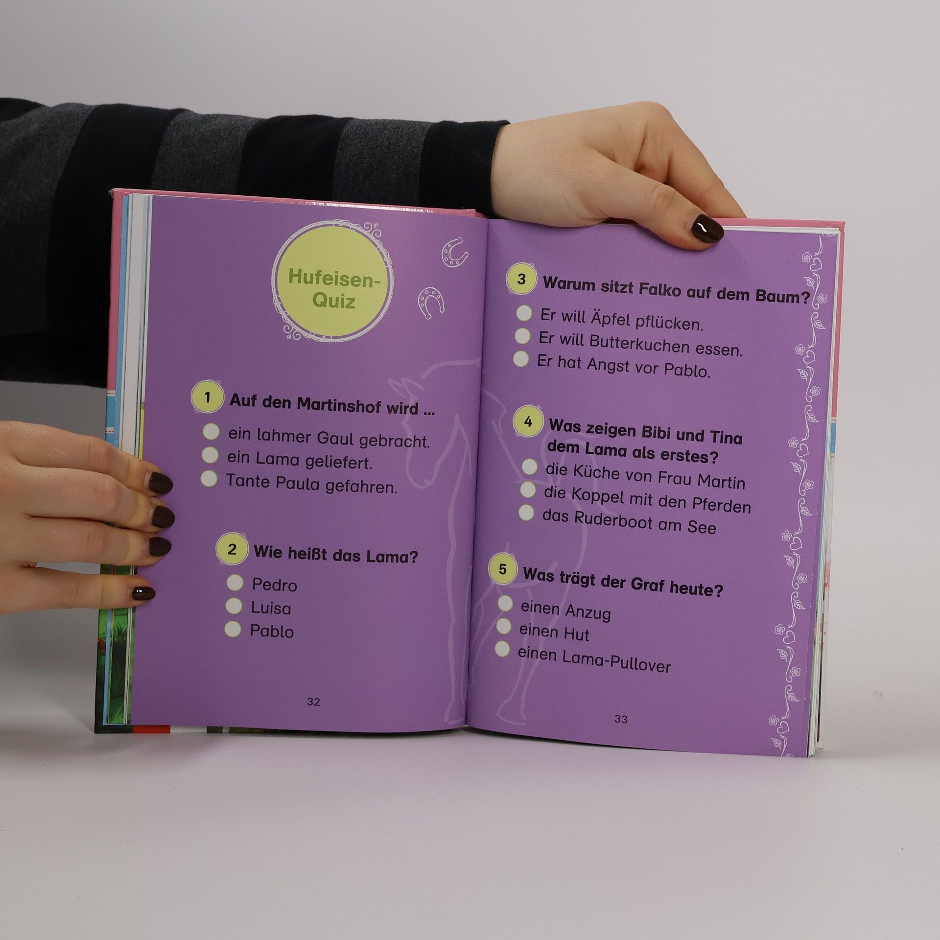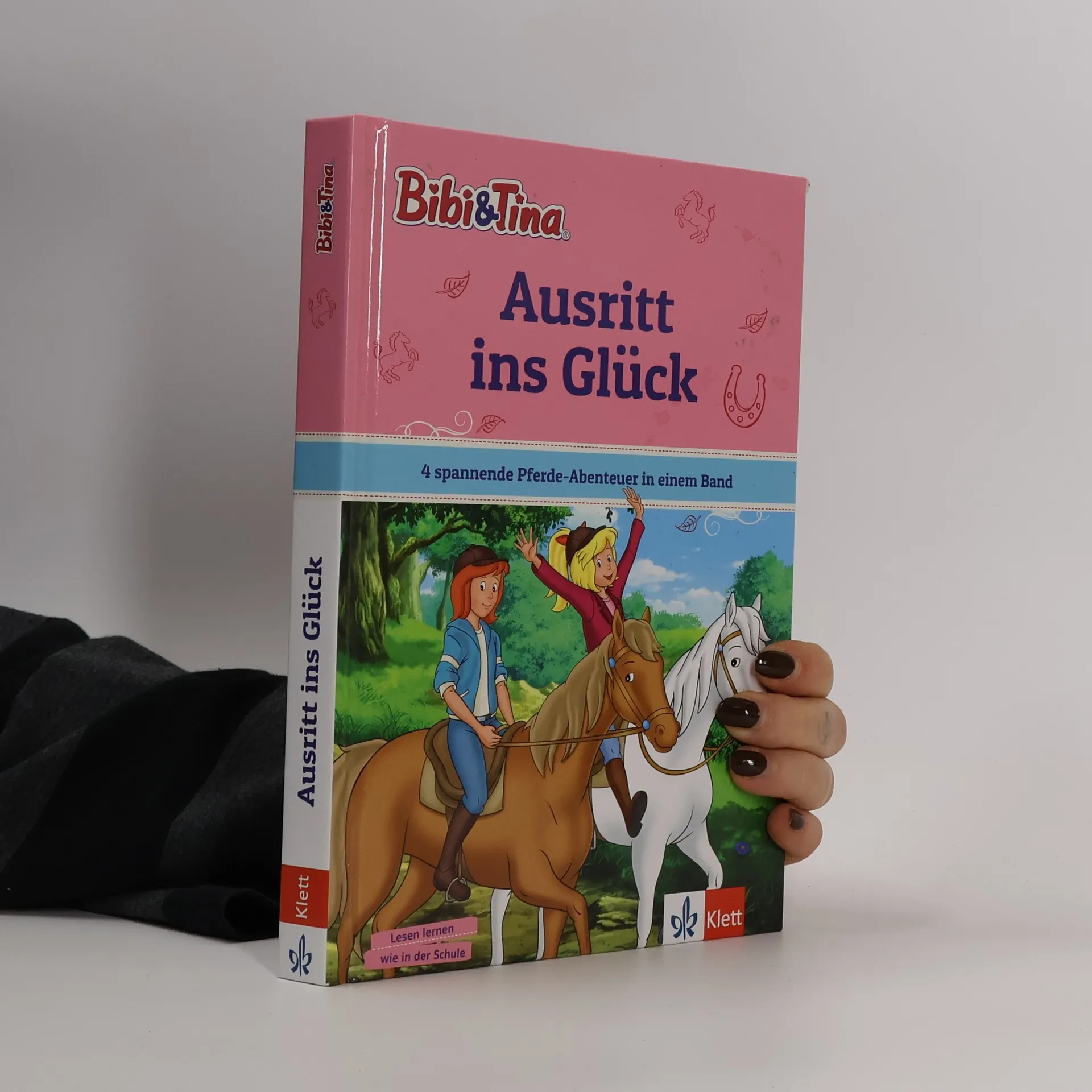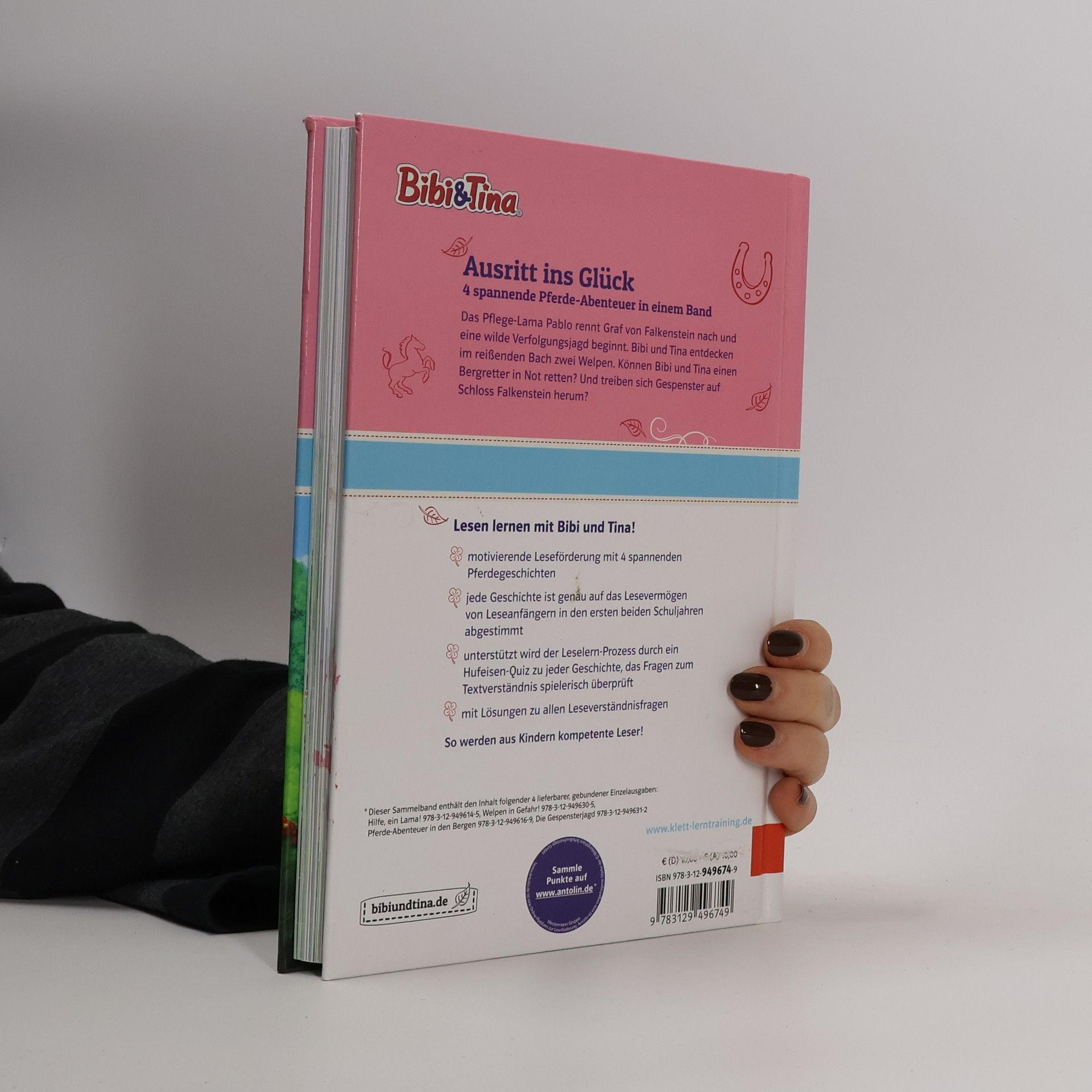 Lesen lernen mit Bibi und Tina – 4 spannende Pferdegeschichten für Erstleser Das Pflege-Lama Pablo rennt Graf von Falkenstein nach und eine wilde Verfolgungsjagd beginnt. Bibi und Tina entdecken im reißenden Bach zwei Welpen. Können Bibi und Tina einen Bergretter in Not retten? Und treiben sich Gespenster auf Schloss Falkenstein herum? Motivierende Leseförderung für Mädchen und Jungen ab 6 Jahren Jede Bibi und Tina Geschichte ist genau auf das Lesevermögen von Leseanfängern in der 1. und 2. Klasse abgestimmt Zu jeder Geschichte gibt es ein Hufeisen-Quiz – so wird das Lesen lernen optimal unterstützt und das Textverständnis überprüft. Mit Lösungen zu allen Leseverständnisfragen Ein pferdestarkes Geschenk für Bibi und Tina Fans