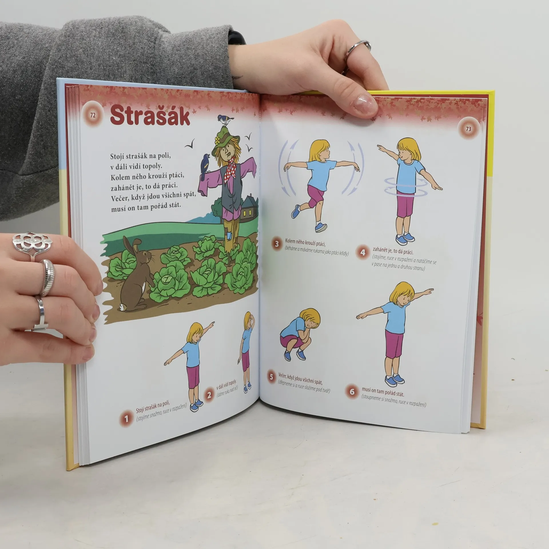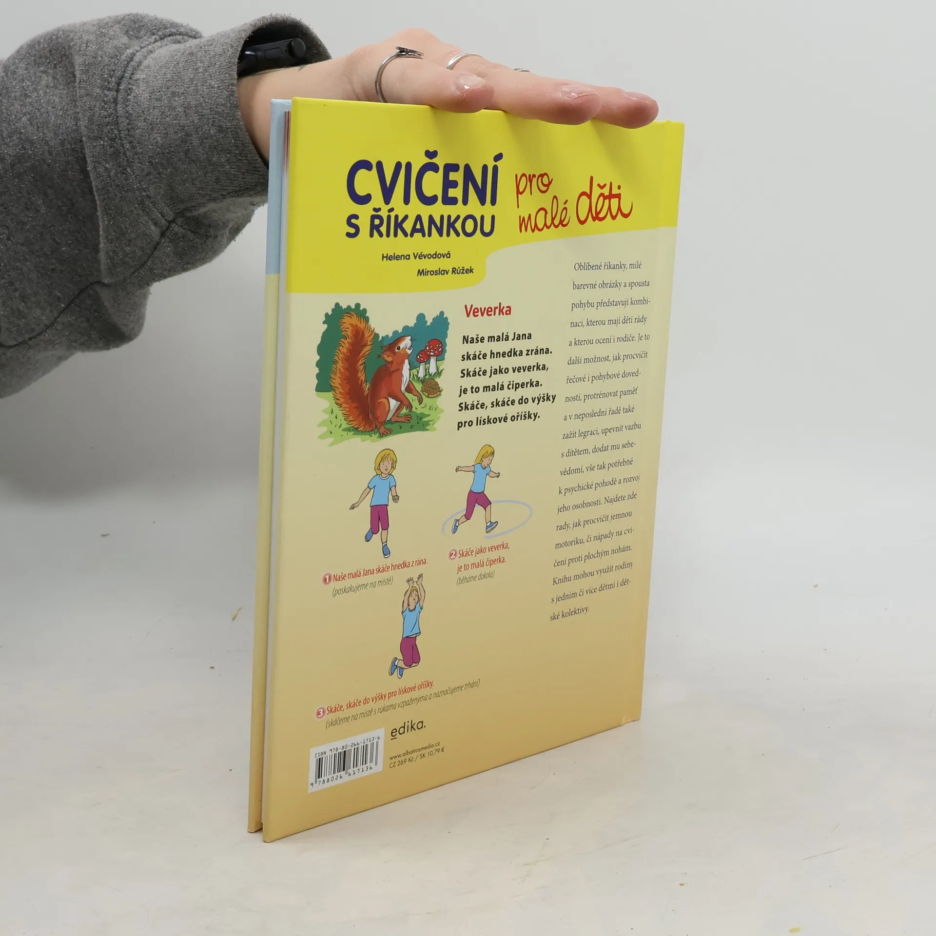 Oblíbené říkanky, milé barevné obrázky a spouta pohybu představuje kombinaci, kterou mají děti rády a přitom ji ocení i jejich rodiče. Je to další možnost jak procvičit řečové i pohybové dovednosti, protrénovat paměť, upevnit vazbu s dítětem, dodat mu sebevědomí, tolik potřebné k psychické pohodě a rozvoji jeho osobnosti. A to vše zábavnou formou. V knížce také najdete mimo jiné i tipy na procvičení jemné motoriky či cvičení proti plochým nohám. Nápady jsou využitelné i pro dětské kolektivy.