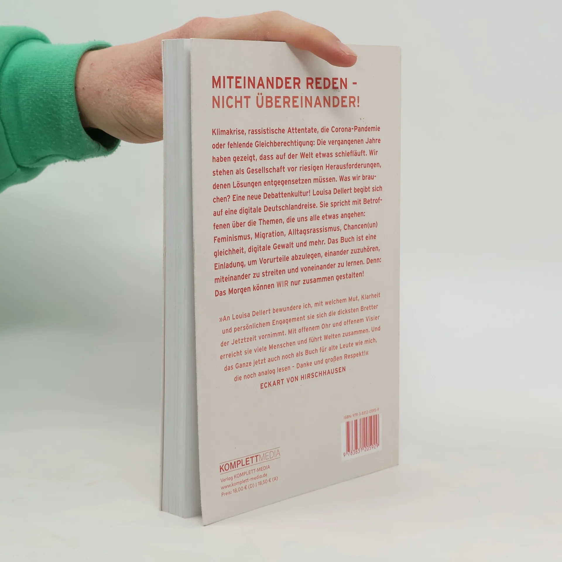 Klimakrise, rassistische Attentate, die Corona-Pandemie oder fehlende Gleichberechtigung: Die vergangenen Jahre haben gezeigt, dass auf der Welt etwas schiefläuft. Wir stehen als Gesellschaft vor riesigen Herausforderungen, denen wir Lösungen entgegensetzen müssen. Was wir brauchen? Eine neue Debattenkultur!Louisa Dellert begibt sich auf eine digitale Deutschlandreise. Sie spricht mit Betroffenen über die Themen, die uns alle etwas angehen: Feminismus, Migration, Alltagsrassismus, Chancen(un)gleichheit, digitale Gewalt und mehr. Das Buch ist eine Einladung, um Vorurteile abzulegen, einander zuzuhören, miteinander zu streiten und voneinander zu lernen. Denn: Das Morgen können WIR nur zusammen gestalten!