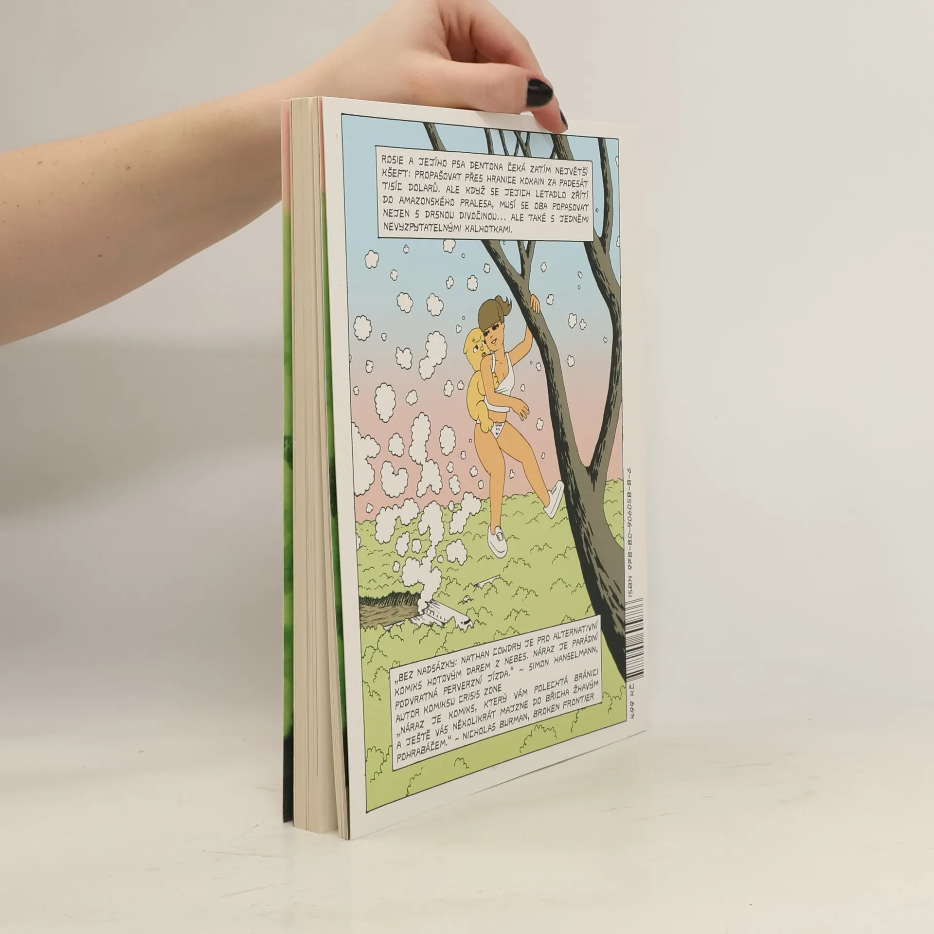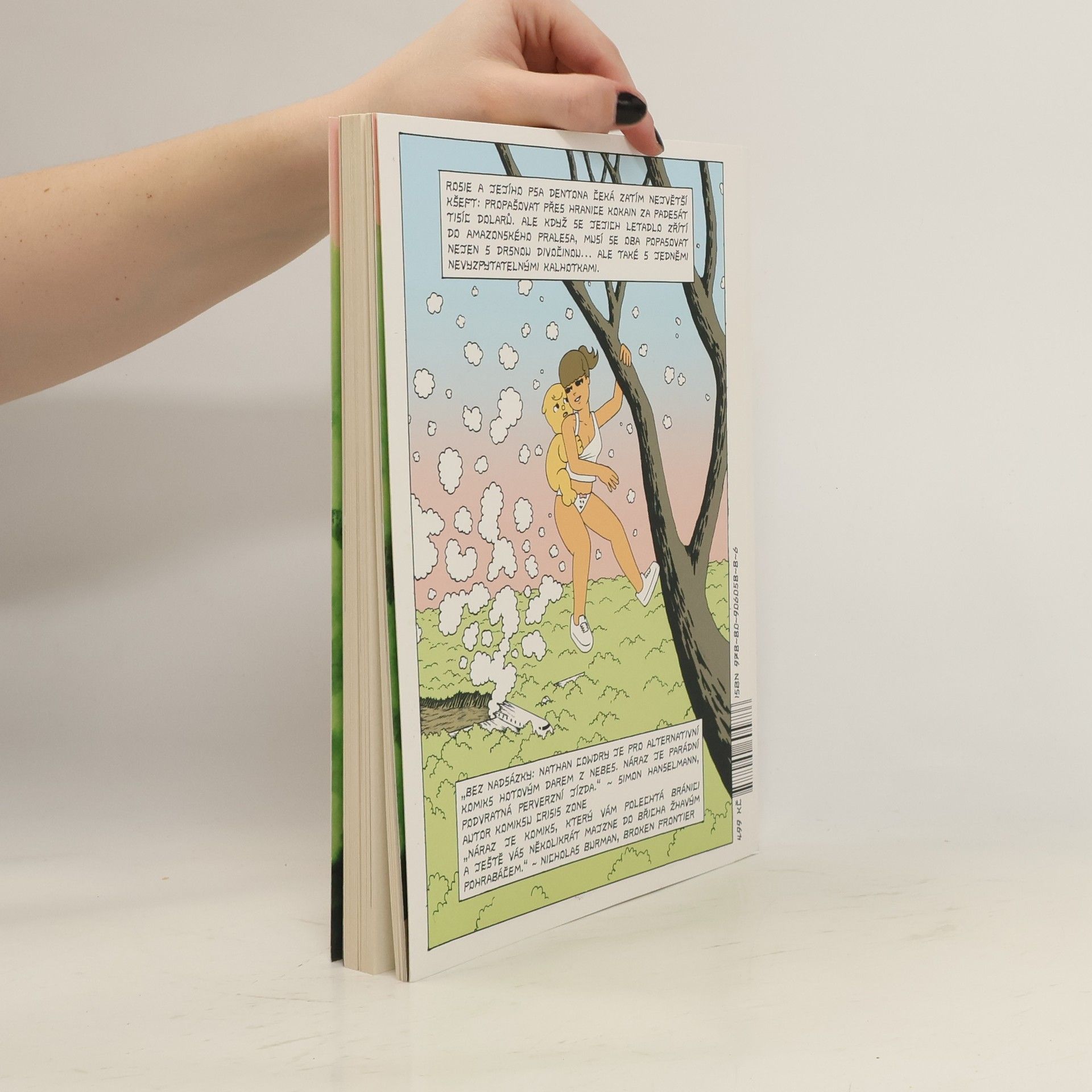 Když v amazonském pralese havaruje letadlo a jedinými přeživšími jsou roztomilá Rosie, její mluvící pes Denton a oživlé sociopatické kalhotky, nastává klasická bitva o přežití. Kdo z naší trojice vyvázne z džungle živý? Připravte se na dobrodružnou výpravu do komiksového srdce temnoty – čtení pouze pro otrlé a dospělé! Komiksový román Náraz Nathana Cowdryho je pronikavá černá komedie plná nekorektního humoru, popkulturních narážek, lascivních vtípků a přestřeleného násilí, v jejímž jádru se skrývá kritika konzumerismu, establishmentu, povrchnosti a pokrytectví. Doporučeno čtenářům od 18 let.