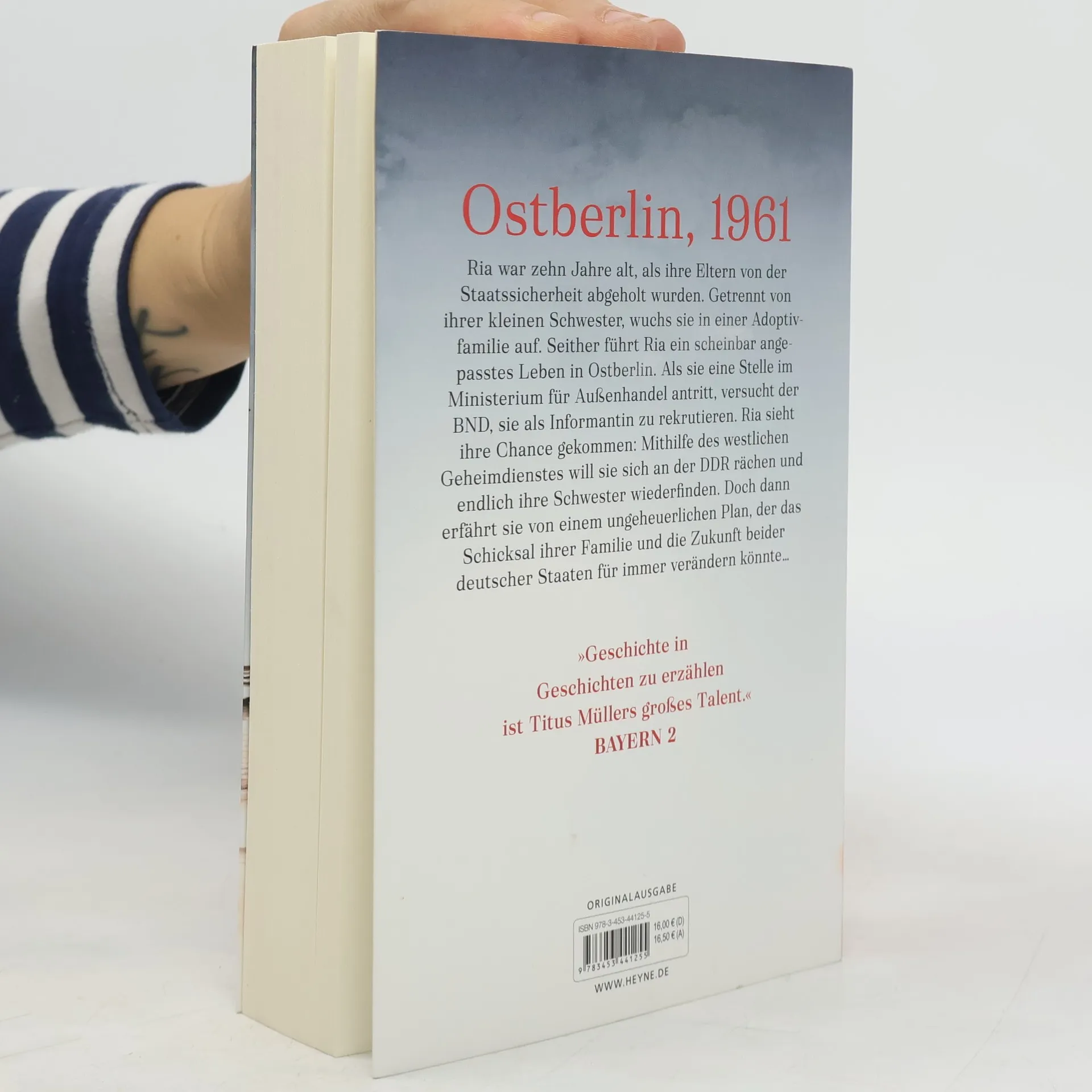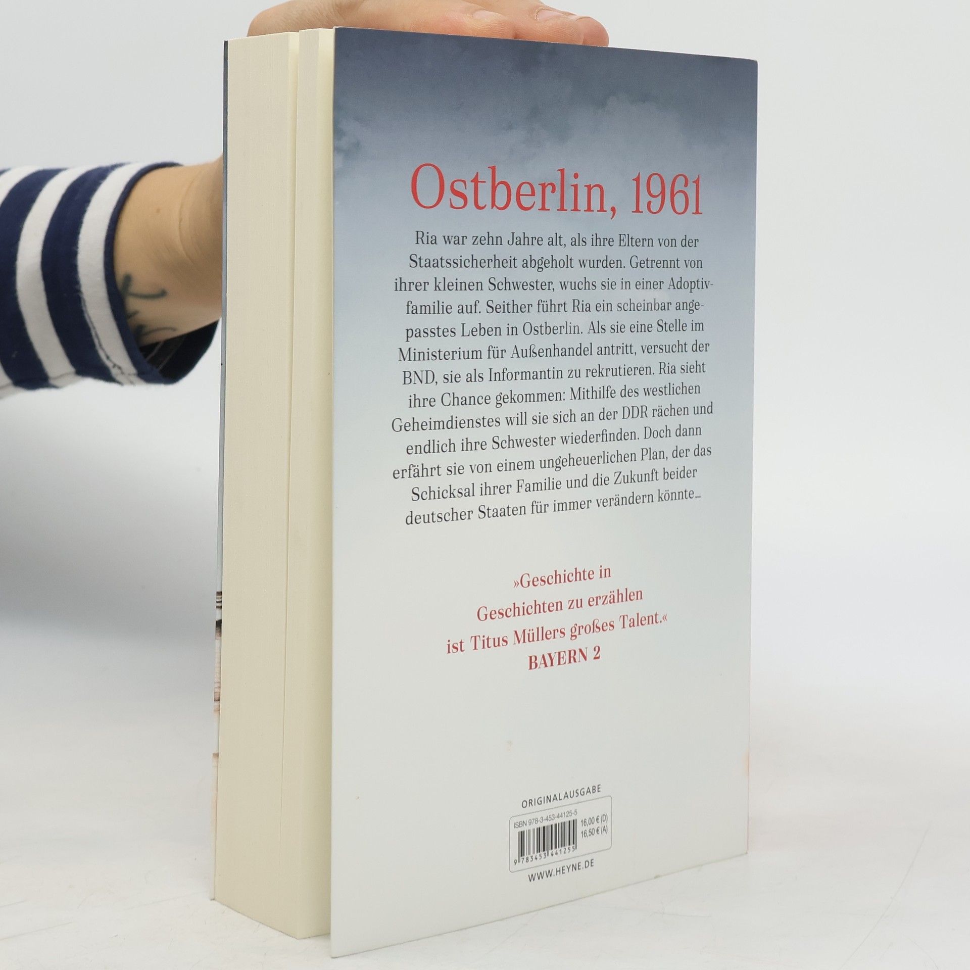Ria ist zehn Jahre alt, als ihre Eltern von der Staatssicherheit abgeholt werden. Sie wird von ihrer kleinen Schwester getrennt und in einer Adoptivfamilie untergebracht. Seither führt Ria in Ostberlin ein scheinbar angepasstes Leben. Erst als der BND sie als Informantin rekrutiert, sieht sie ihre Chance gekommen. Mithilfe des westlichen Geheimdienstes will Ria sich an der DDR rächen und endlich ihre Schwester wiederfinden. Doch dann erfährt sie im Sommer 1961 von einem ungeheuerlichen Plan, der ihr Schicksal und die Zukunft beider deutscher Staaten für immer verändern könnte …