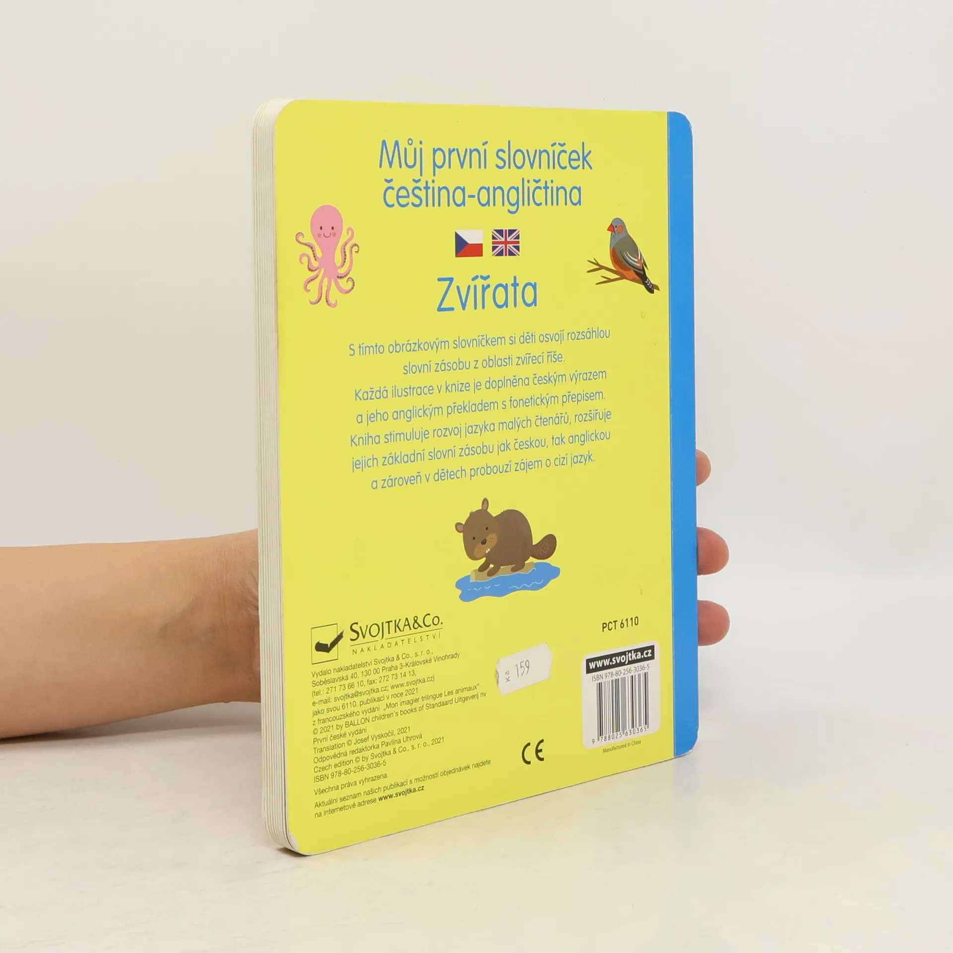 S tímto obrázkovým slovníkem si děti osvojí rozsáhlou slovní zásobu z oblasti zvířecí říše. Každá ilustrace v knize je doplněna českým výrazem a jeho anglickým překladem s fonetickým přepisem. Kniha stimuluje rozvoj jazyka malých čtenářů, rozšiřuje jejich základní slovní zásobu jak českou, tak anglickou a zároveň v dětech probouzí zájem o cizí jazyk. Propojení obrázku se slovem vede ke snadnému zapamatování, a tím přirozeně rozšiřuje slovní zásobu dítěte. Zvířata jsou v knize logicky rozdělena například na lesní zvěř, domácí mazlíčky, zvířata na farmě, u moře, v zoo nebo mláďata.