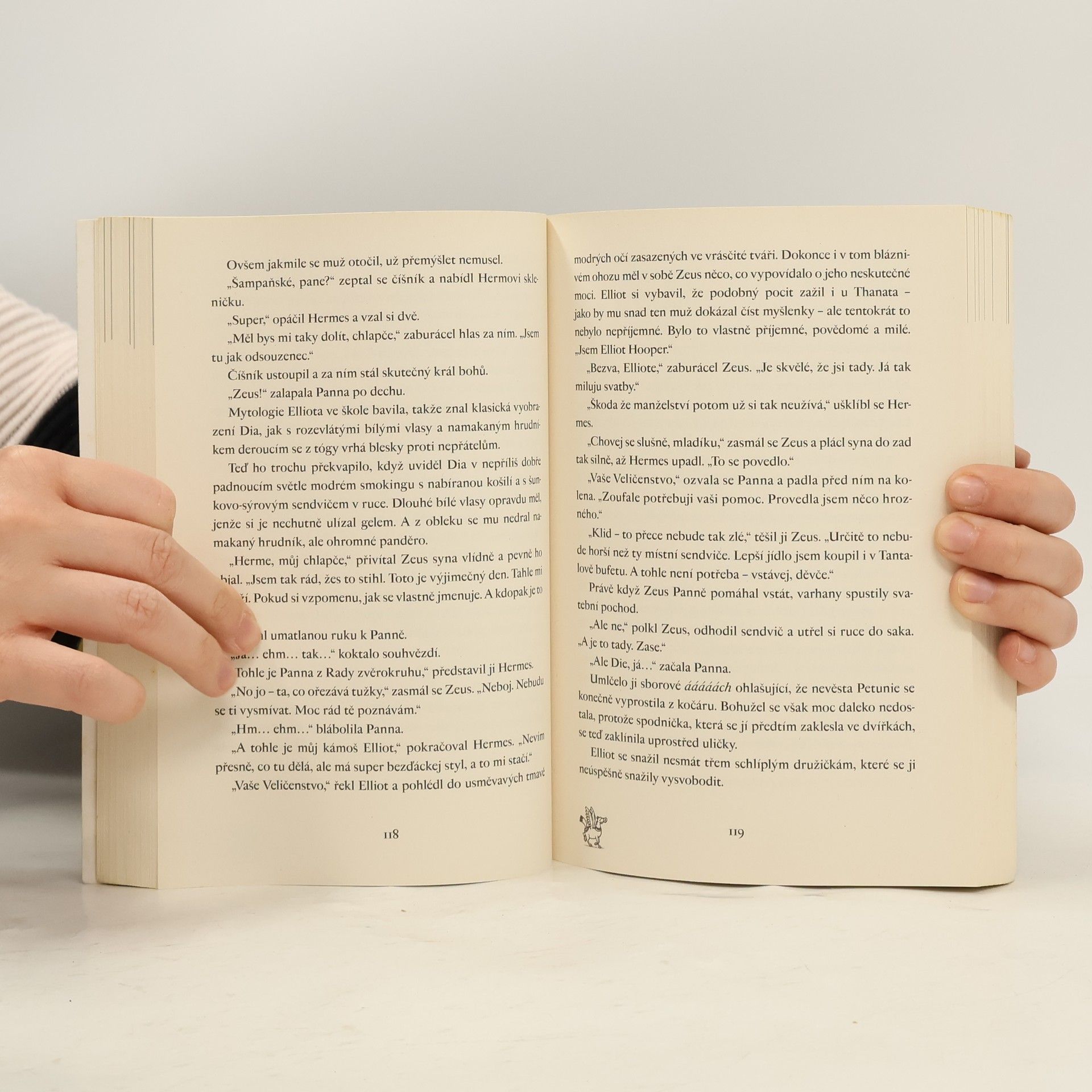 Olympané v současném světě internetu, mobilů, tabletů a komerce. Začátek bestsellerové série vedle které bledne i Percy Jackson. Elliot Hooper si přeje jediné: klidný život pro sebe a svou nemocnou mámu. Když ale do jejich chlívku spadne jako blesk z čistého nebe divná holka se stříbrnými vlasy, která o sobě tvrdí, že je nesmrtelná a že je Panna – ano, jedno ze znamení zvěrokruhu osobně –, jeho touha po klidu je rozmetána na kusy podobně jako halda hnoje, na které dívka neobratně přistála. Panna má na zemi tajné poslání. Jeho nedílnou součástí je NAPROSTÝ ZÁKAZ komunikace se smrtelníky. Takže co si počít s Elliotem? Nejlepší asi bude, když ho na misi vezme s sebou. Jenže celkem„banální“ poslání se zvrtne a stane se z něj úkol takřka nesplnitelný. Klidně si troufněme říci NADLIDSKÝ. Panně a Elliotovi se totiž podaří vypustit na svobodu krále všech démonů Thanata, který byl dva tisíce let uvězněn pod kameny Stonehenge. Protože ho sami nedokážou zastavit, nezbude jim nic jiného než vyhledat pomoc Dia a dalších olympských bohů. Ti si však užívají zasloužený důchod a vůbec nemají radost z toho, že je někdo tahá do služby…