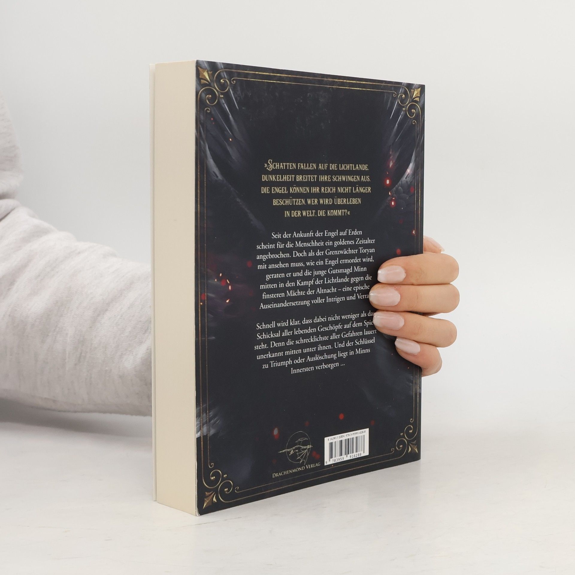 »Schatten fallen auf die Lichtlande.Dunkelheit breitet ihre Schwingen aus.Die Engel können ihr Reich nicht länger beschützen.Wer wird überleben in der Welt, die kommt?«Seit der Ankunft der Engel auf Erden scheint für die Menschheit ein goldenes Zeitalter angebrochen. Doch als der Grenzwächter Toryan mit ansehen muss, wie ein Engel ermordet wird, geraten er und die junge Gutsmagd Minn mitten in den Kampf der Lichtlande gegen die finsteren Mächte der Altnacht eine epische Auseinandersetzung voller Intrigen und Verrat.Schnell wird klar, dass dabei nicht weniger als das Schicksal aller lebenden Geschöpfe auf dem Spiel steht. Denn die schrecklichste aller Gefahren lauert unerkannt mitten unter ihnen. Und der Schlüssel zu Triumph oder Auslöschung liegt in Minns Innersten verborgen