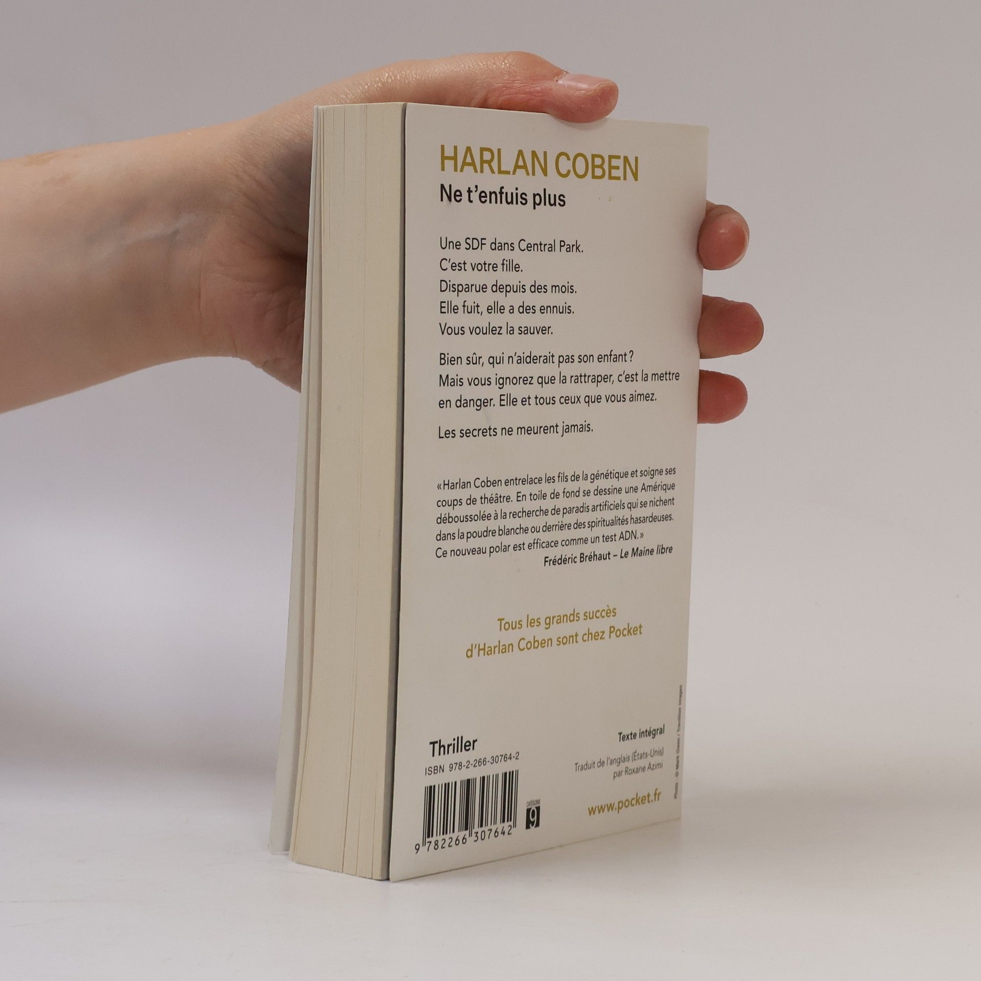 "Une SDF dans Central Park. C'est votre fille. Disparue depuis des mois. Elle fuit, elle a des ennuis. Vous voulez la sauver. Bien sûr, qui n'aiderait pas son enfant ? Mais vous ignorez que la rattraper, c'est la mettre en danger. Elle et tous ceux que vous aimez. Les secrets ne meurent jamais."-- from https://www.maarifculture.com/ne-tenfuis-plus-harlan-coben/dp/9782266307642