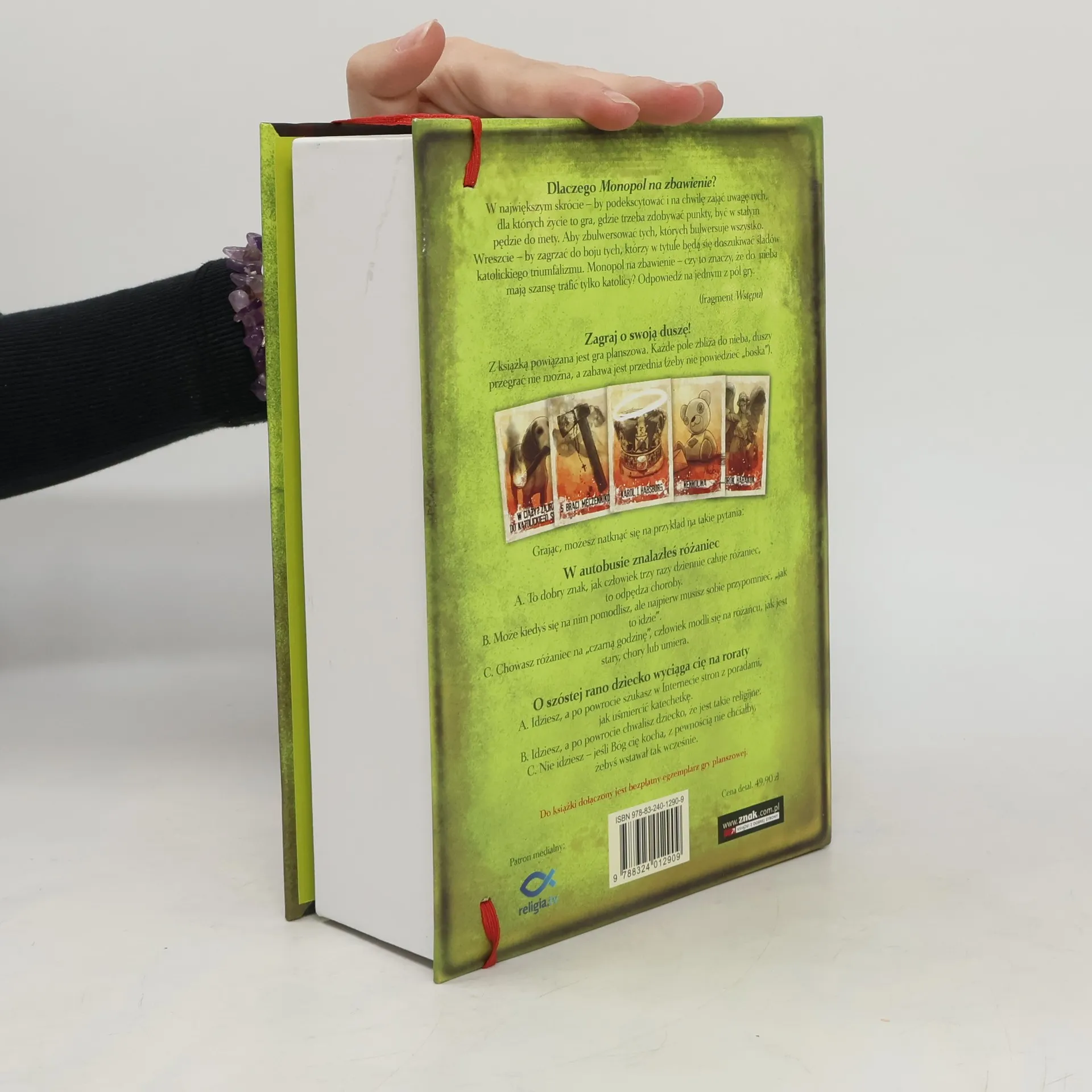 Gra toczy się o najwyższą stawkę! Szymon Hołownia w nietypowy sposób zachęca nas do zmagań z Kościołem i własną wiarą. Książka odpowiada zarówno na pytania tych, którzy o Kościele wiedzą niewiele, a chcieliby wiedzieć więcej np. dlaczego pościć w piątek i czemu Kościół nie lubi wróżek, jak i tych, którzy są na wyższym poziomie wtajemniczenia. Dla nich będą interesujące rozważania o jałmużnie, wpływie kościelnej formacji na tembr głosu księży czy godzeniu zła w świecie z Bożą dobrocią. Możemy sprawdzić swoją religijną wiedzę, a także zastanowić się nad rzeczami, o których wcześniej nie mieliśmy okazji pomyśleć. Hołownia odkurza zapomnianych świętych, którzy mogą nam towarzyszyć i wspierać nas w grze o zbawienie, pokazuje, jak dziś można przestrzegać 10 przykazań lub je łamać. Książka zawiera mnóstwo anegdot i ciekawostek związanych mniej lub bardziej z religią i Kościołem, obficie czerpie zarówno z popkultury, jak i z klasyków duchowości.