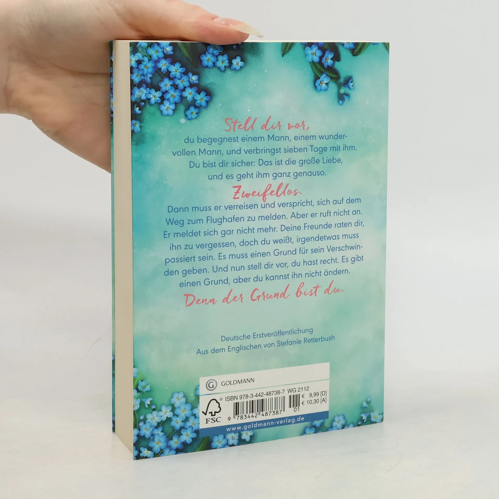 Stell dir vor, du begegnest einem Mann, einem wundervollen Mann, und verbringst sieben Tage mit ihm. Am Ende dieser Woche bist du dir sicher: Das ist die große Liebe, und es geht ihm ganz genauso. Zweifellos. Dann muss er verreisen und verspricht dir, er meldet sich auf dem Weg zum Flughafen. Aber er ruft nicht an. Er meldet sich gar nicht mehr. Deine Freunde raten dir, ihn zu vergessen, doch du weißt, sie irren sich. Irgendetwas muss passiert sein, es muss einen Grund für sein Verschwinden geben. Und nun stell dir vor, du hast recht. Es gibt einen Grund, aber du kannst ihn nicht ändern. Denn der Grund bist du.